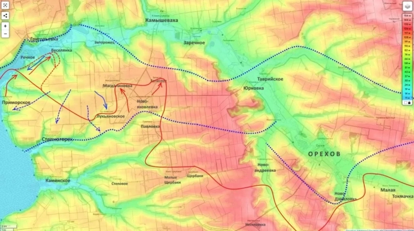 Украинские войска, по словам блогера, пытаются контратаковать в районе Приморска, а также использовать балки и лесополосы у Степногорска, чтобы сдержать продвижение. Но эти попытки, как утверждается, пресекаются, а резервы противника попадают под планомерное огневое воздействие.