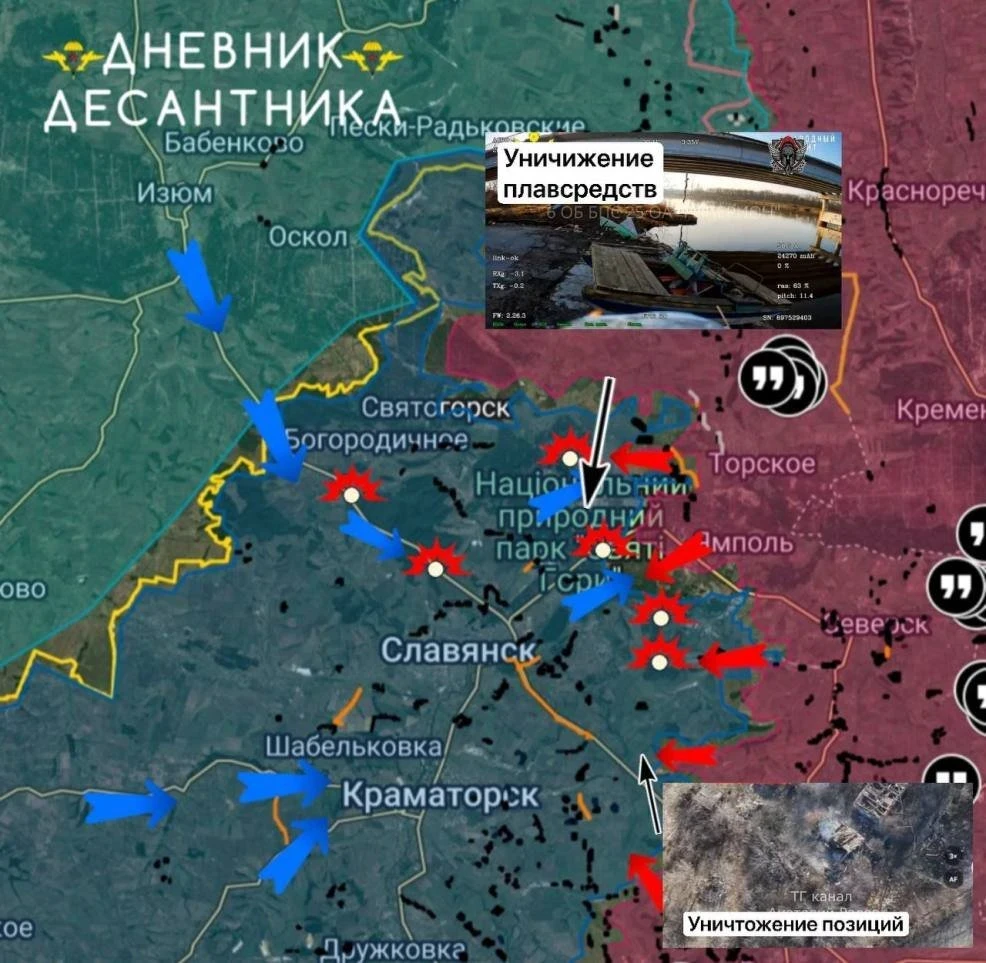 На Краснолиманском участке идут вязкие и предельно тяжёлые бои за Красный Лиман. Украинское командование пытается перебрасывать подкрепления малыми группами со стороны Щурово, однако большая часть этих сил вскрывается российской разведкой и уничтожается артиллерией еще на подступах, в лесных массивах.