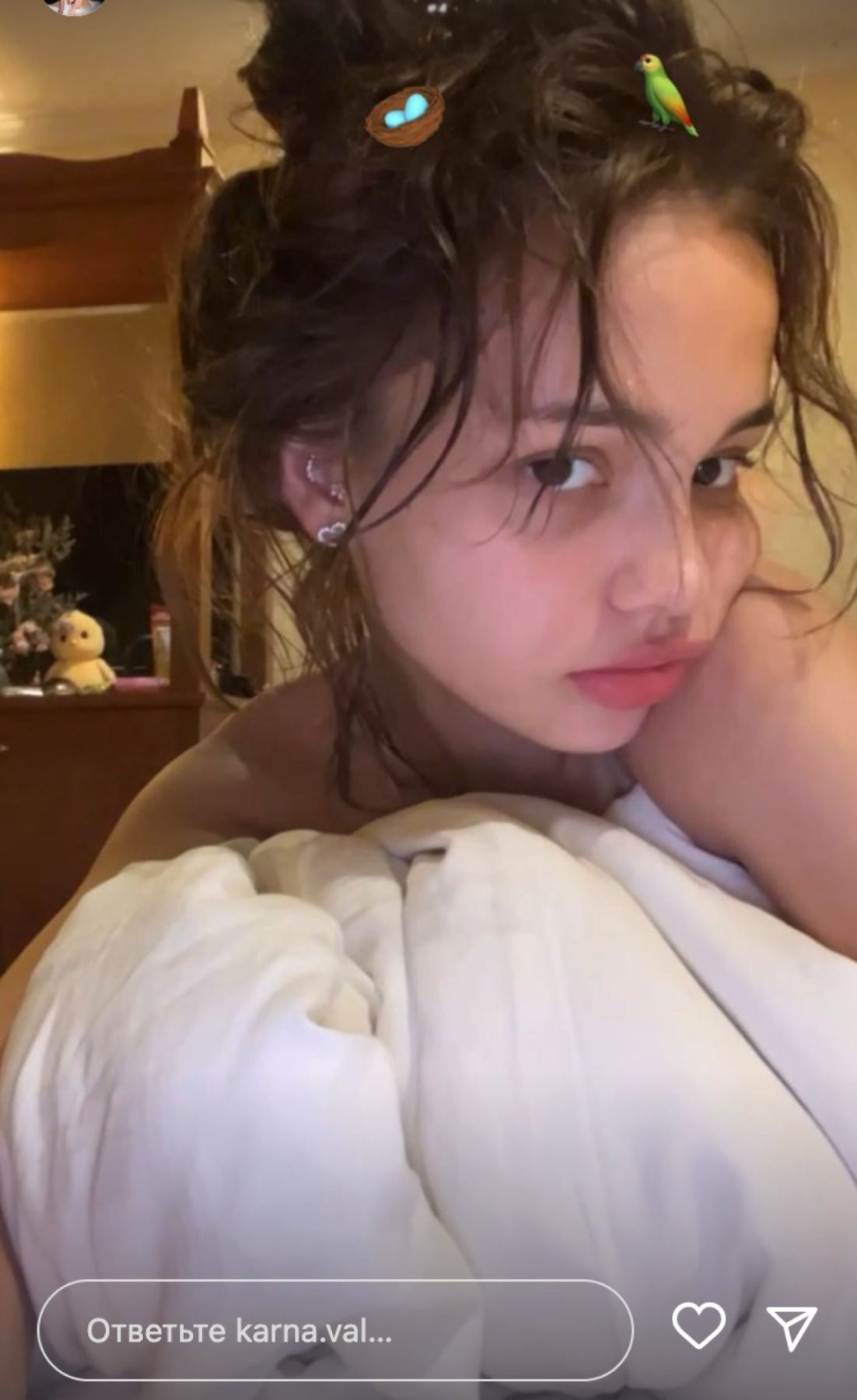 На этот раз Валя решила показать своим подписчикам, как она выглядит утром. Карнавал на снимке предстала без макияжа и одежды. Откровенное фото девушка сделала в постели. Под глазами у знаменитости были видны синяки.