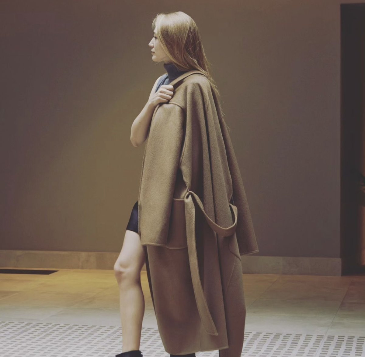 Затем она сменила верхнюю одежду. Звезда надела длинное пальто, распустила длинные волосы, сделав легкий естественный макияж.