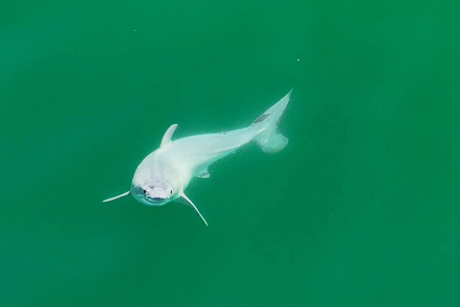 Несмотря на их важную роль в экосистеме (и нашей психике), мало что известно о воспроизводстве больших белых и жизни их детенышей. Используя дрон для съемки акул (самый безопасный и быстрый способ их обнаружения) у Карпинтерии, штат Калифорния, кинорежиссер Карлос Гуана и кандидат философии из Калифорнийского Риверсайда Филипп Стернс заметили молодого детеныша большой белого акулы. Детеныш полностью оправдал свое название, будучи по-настоящему белым.