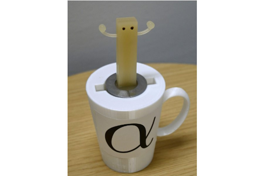 Робот имеет металлический каркас, помещенный в 3D-напечатанную кружку, и использует пневматические трубки для создания движений. Внутренние камеры наполняются воздухом, что придает ему реалистичные движения, а звук исходит из динамика, встроенного в устройство.