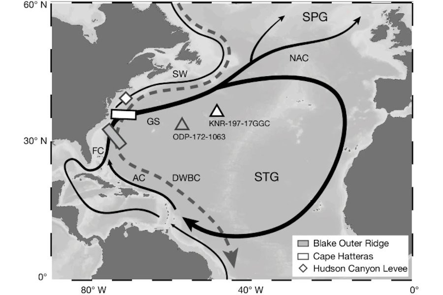 Гольфстрим и другие течения в Атлантике, включая субтропический круговорот (STG), зависят от силы ветра и плавучести воды. Современные данные показывают, что STG простирается до глубины около 1 км на северо-западе Атлантического океана. Однако в период последнего ледникового максимума STG был гораздо глубже, достигая 2-2,5 км.