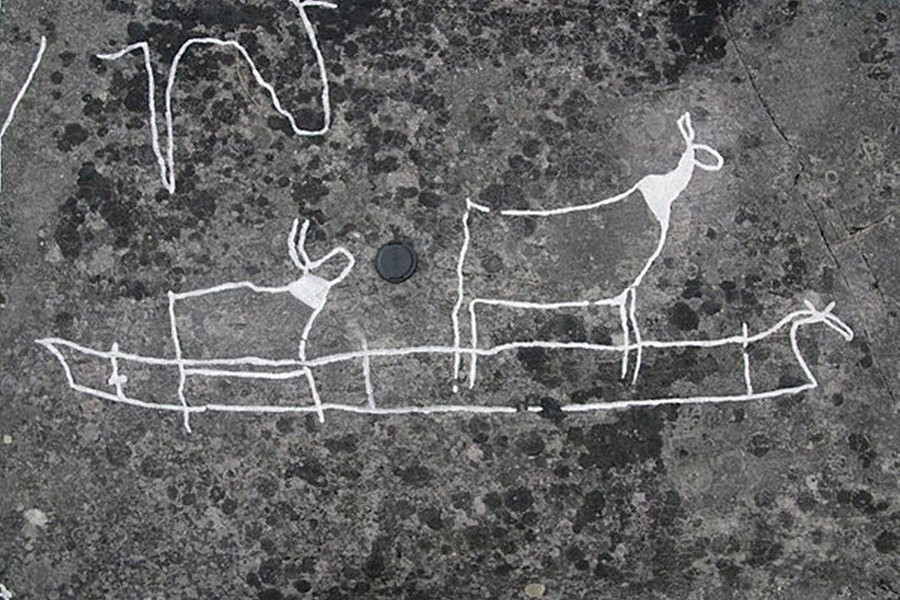 Это может указывать на то, что скандинавские неолитические лодки, изображенные на наскальных рисунках, также являются кожаными лодками, поэтому находящиеся в них люди изображены целиком, хотя лодки должны были бы частично их закрывать.