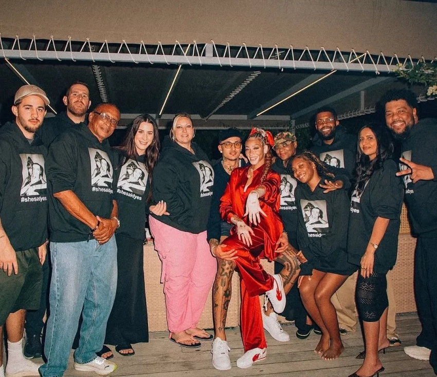 Кайл Кузма и Винни Харлоу с друзьями/Фото: winnieharlow/Instagram*