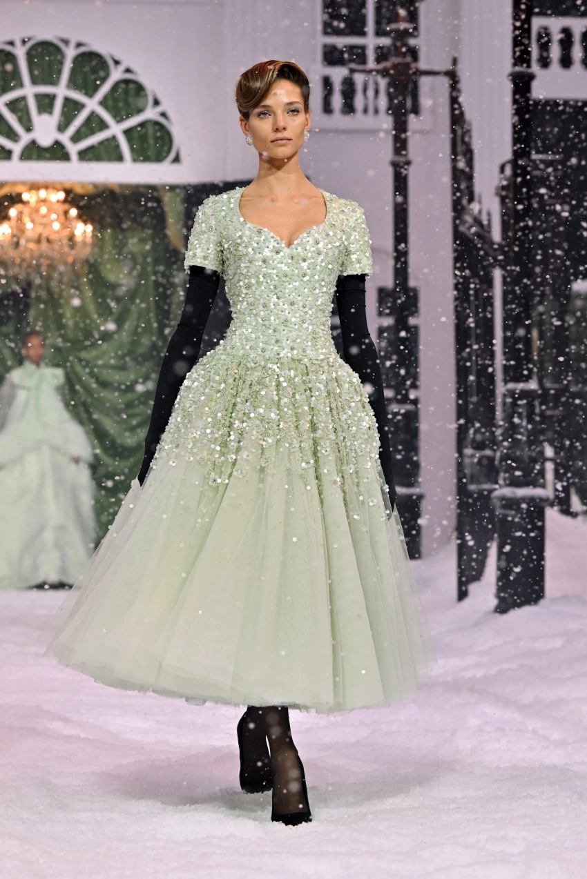 Алеся Кафельникова/Фото: Jeff Spicer/Getty Imageshttps://t.me/spletnikru2024/24783Модное шоу Richard Quinn было оформлено в стиле зимней сказки. Коллекция бренда состояла в основном из романтичных платьев, украшенных бантами и розами.