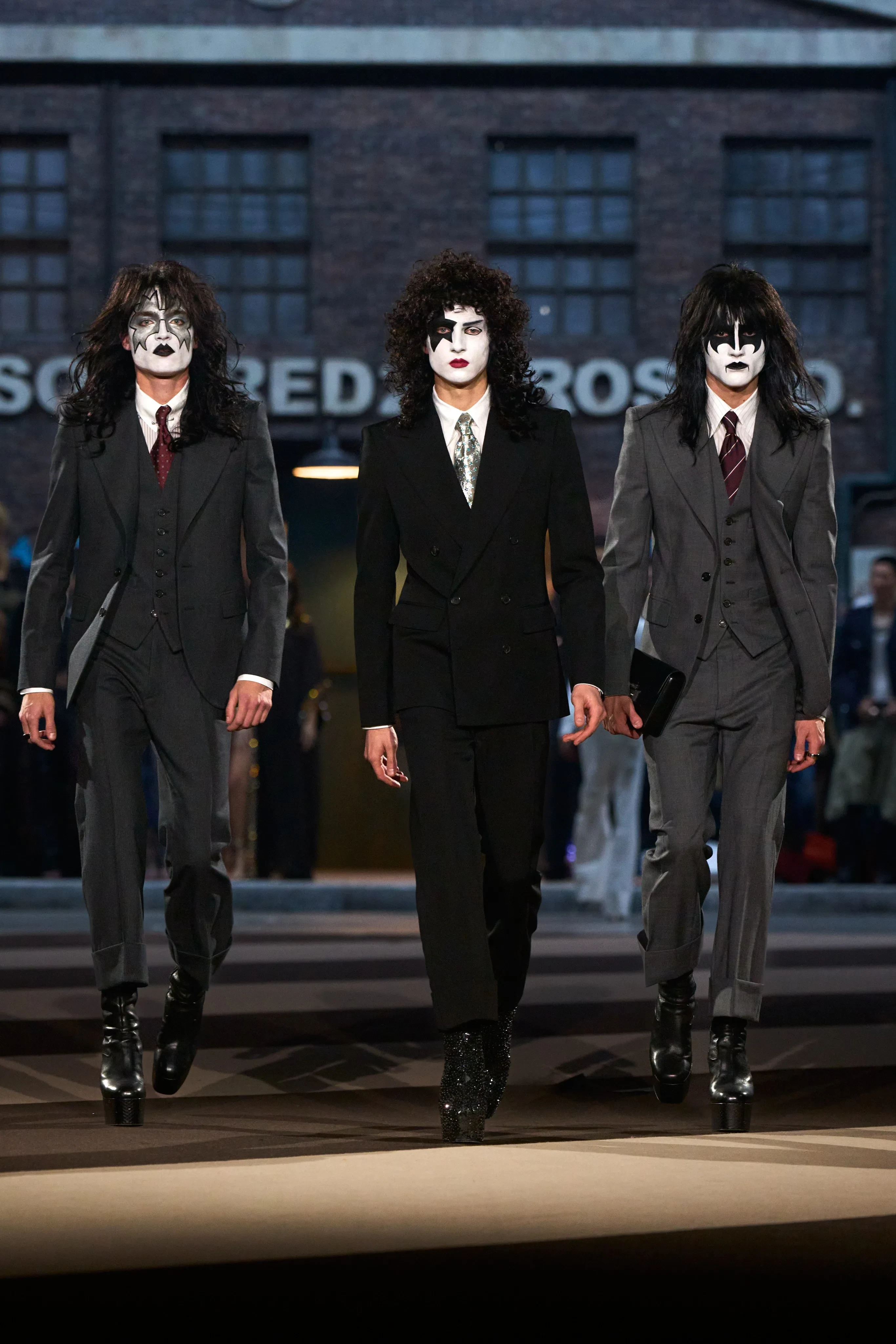 Дин и Ден Кейтены и Бриджит Нильсен на показе Dsquared2 осень-зима — 2025/Фото: Alessandro Lucioni/Gorunway.com