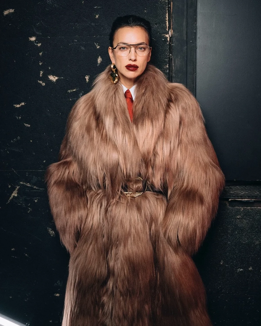 Неделя моды в Милане: Ирина Шейк в мехах на показе Ferrari