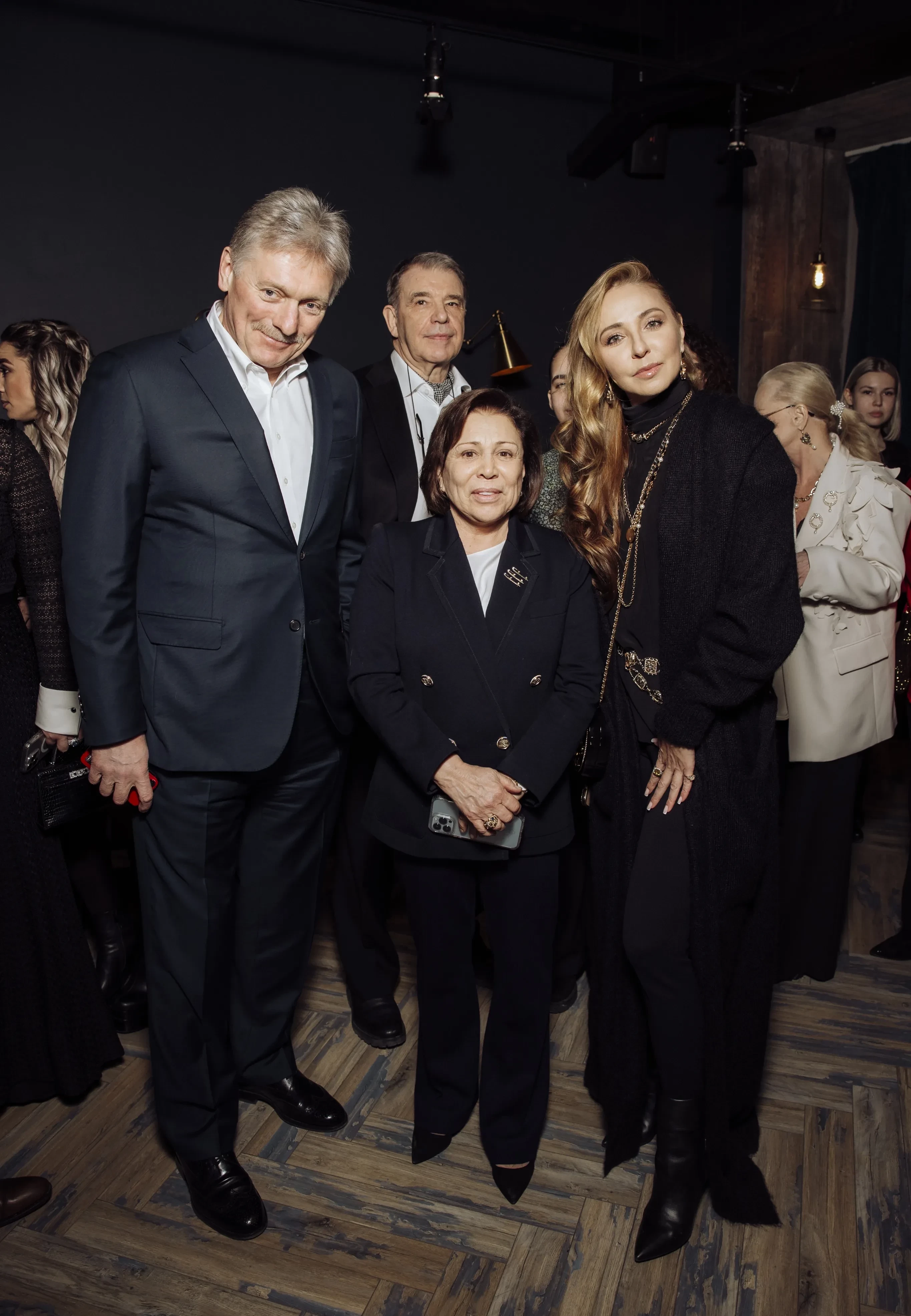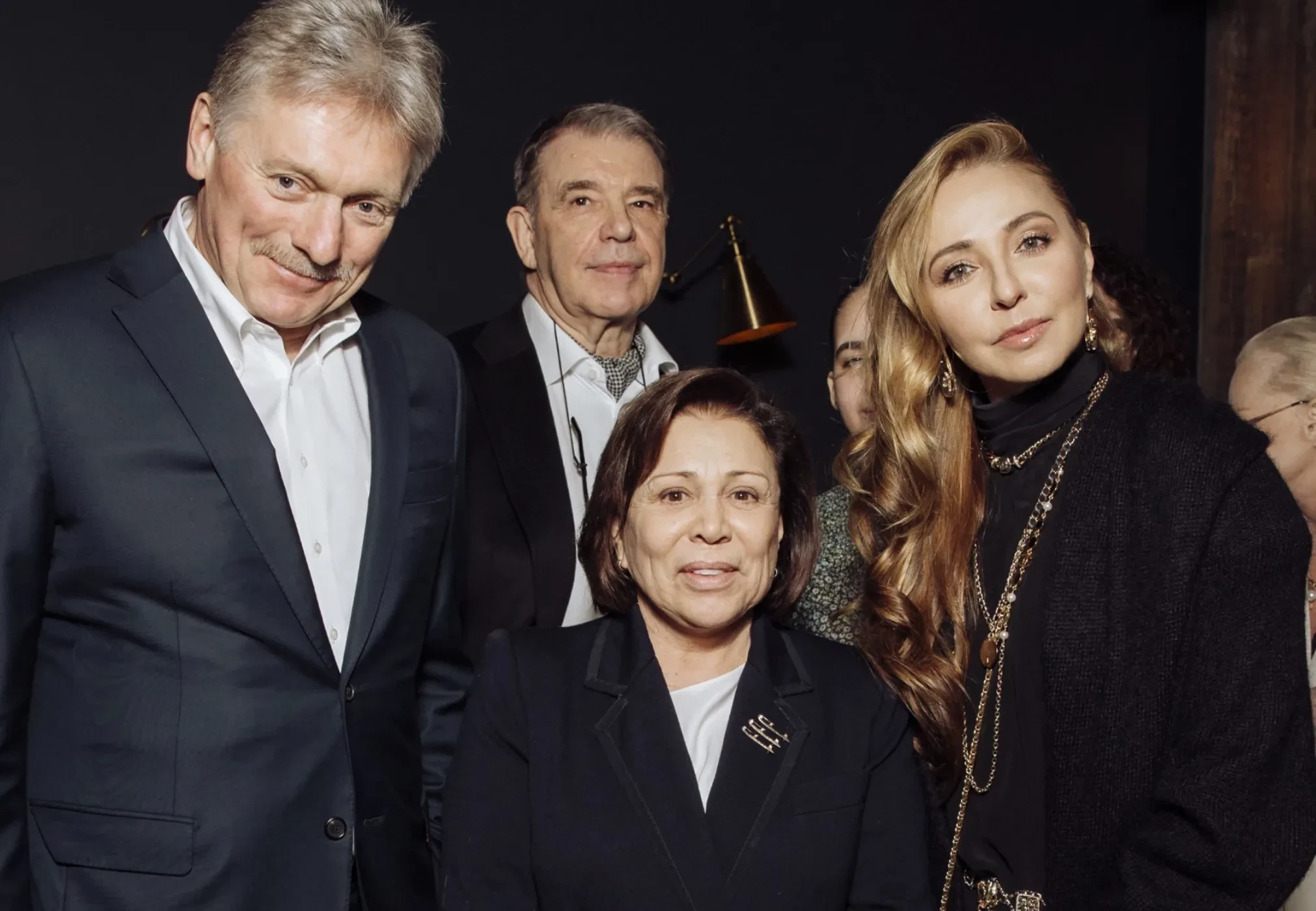 Дмитрий Песков, Татьяна Навка, Яна Рудковская и Олег Меньшиков с женой на премьере фильма "Роднина"