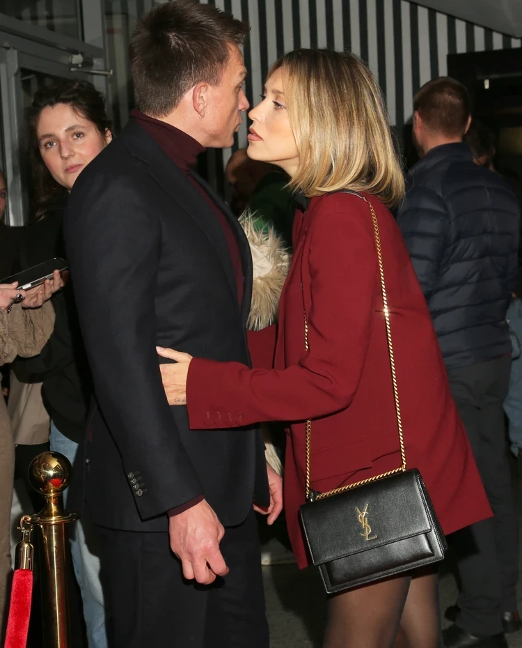 В числе звездных гостей на показ пришли певец Влад Топалов и его жена, телеведущая Регина Тодоренко. На премьеру Влад надел классический черный костюм, который он дополнил бордовой водолазкой.