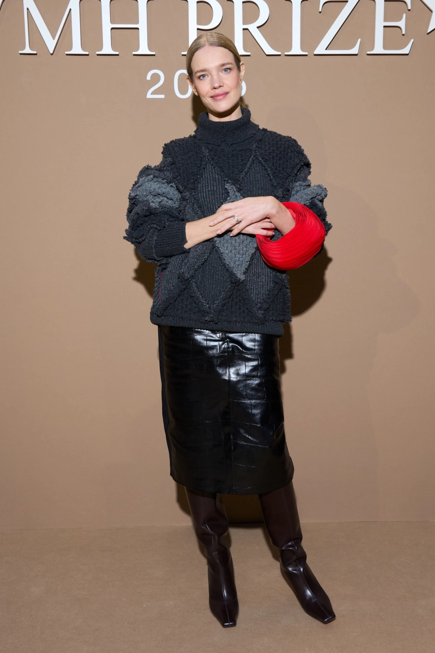 43-летняя Наталья Водянова пришла на мероприятие в кожаной юбке и сером свитере, дополнив образ ярким акцентом в виде красной сумки. 38-летняя Елена Перминова позировала рядом с 29-летним предполагаемым бойфрендом Тарасом Романовым в кожаном жакете с декольте и прозрачной юбке.