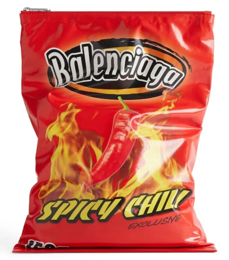 Чипсиков не желаете? Или сумку от Balenciaga почти за 160 000 рублей? Клатчи в виде пакетов чипсов в красном, голубом и желтом цветах представлены на сайте бренда. Правда, ручек у пакетов нет. Так что придется носить очередной шедевр Демны Гвасалии руках.