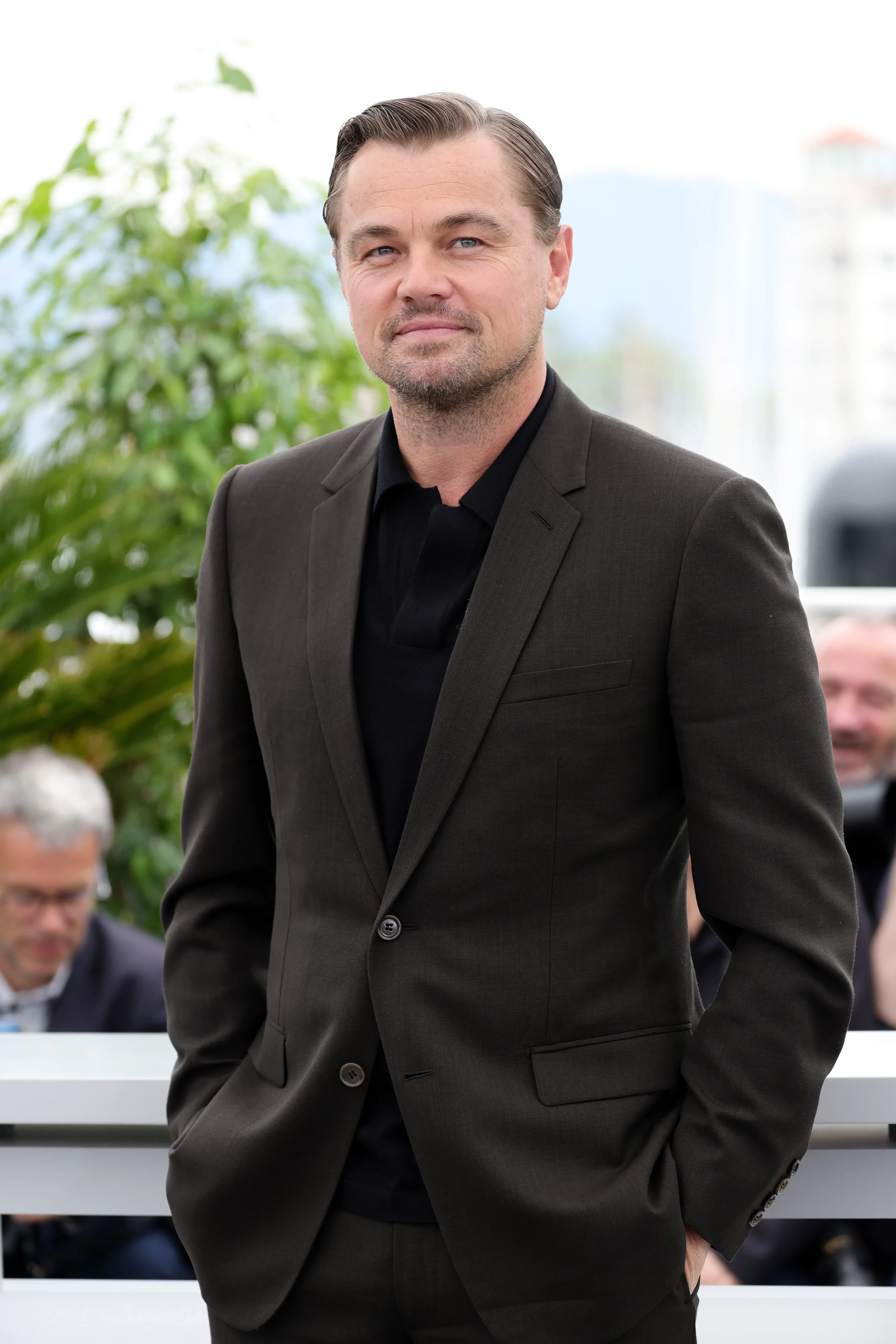 На мероприятии 50-летний Леонардо появился с окрашенными в тёмный цвет волосами, бородой и бровями. Он также надел замшевую рубашку с длинными рукавами и брюки, а образ дополнил чёрными ботинками.