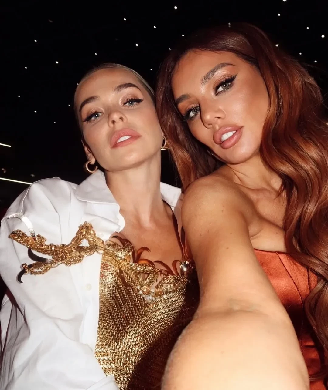 На дорожке Анна позировала в бронзовом платье Zara Khodei с корсетом, подчеркнувшим декольте, и с вырезами на бёдрах. Экс-солистка группы "ВИА Гра" также опубликовала селфи с актрисой Анной Хилькевич.