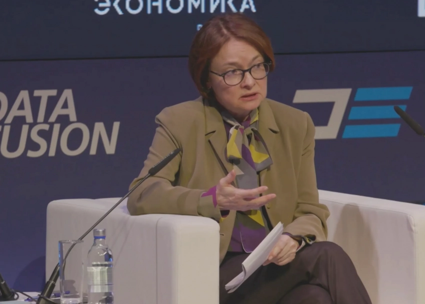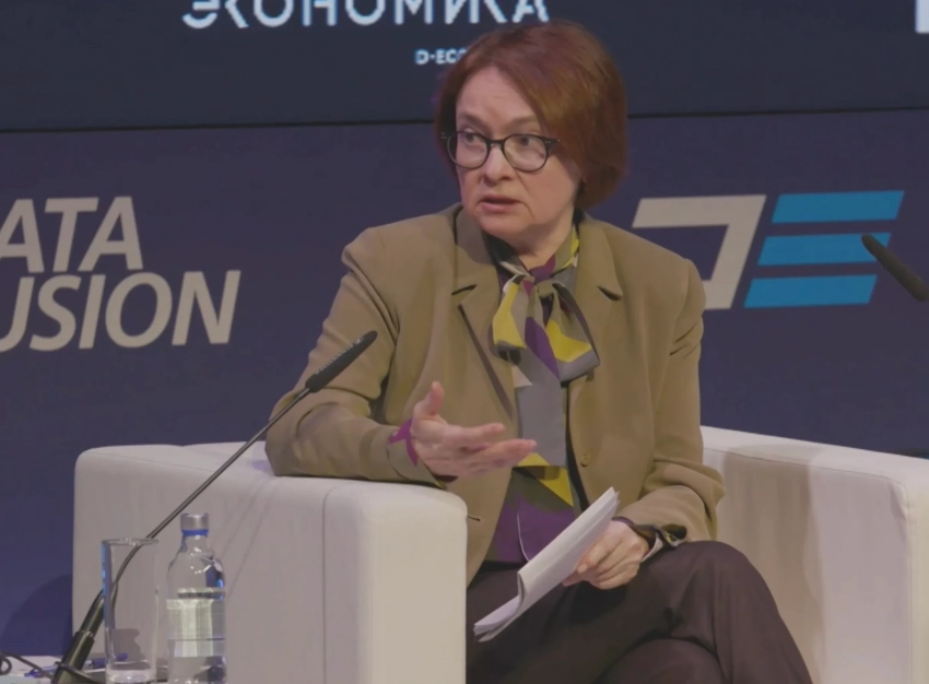 Глава Центрального банка России Эльвира Набиуллина выступила на конференции ВТБ Data Fusion. 61-летняя Набиуллина появилась на мероприятии в жакете горчичного цвета, под который она надела блузу с геометричным принтом и воротником-бантом.