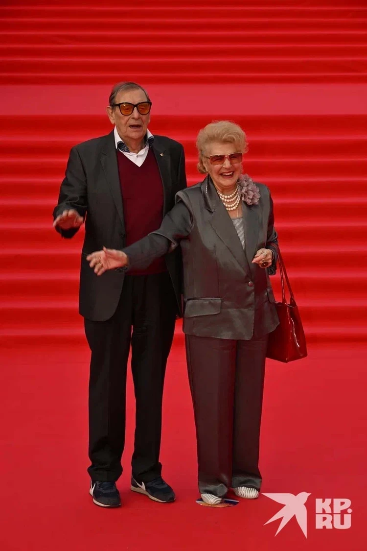 -Светлана и Анатолий -ветераны кинодвижения и они конечно, молодцы, соблюли торжественный дресс-код. Светлана, как истинная леди, не забыла про украшения. Правда, я бы оставил что -то одно -либо бусы, либо брошь. У Анатолия Мукасея, возможно это связано с комфортной ходьбой, вместо мужских классических туфель на красной дорожке кроссовки. Но про крайней мере это кроссовки не брендирование. Так что молодцы, пара красивая и достойная. Наше им уважение и восхищение.