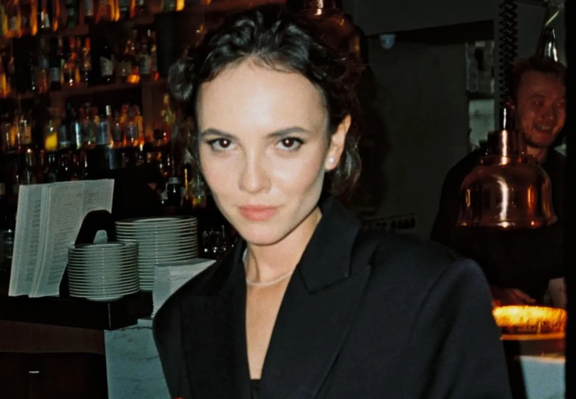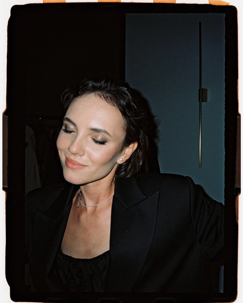 Стася МилославскаяСтася МилославскаяДля праздничного вечера Стася выбрала чёрное мини-платье, накинув сверху оверсайз-пиджак с декоративными рюшами, имитирующими трендовую юбку-баллон. Образ она дополнила чёрными лоферами, а волосы уложила в "мокром" стиле.