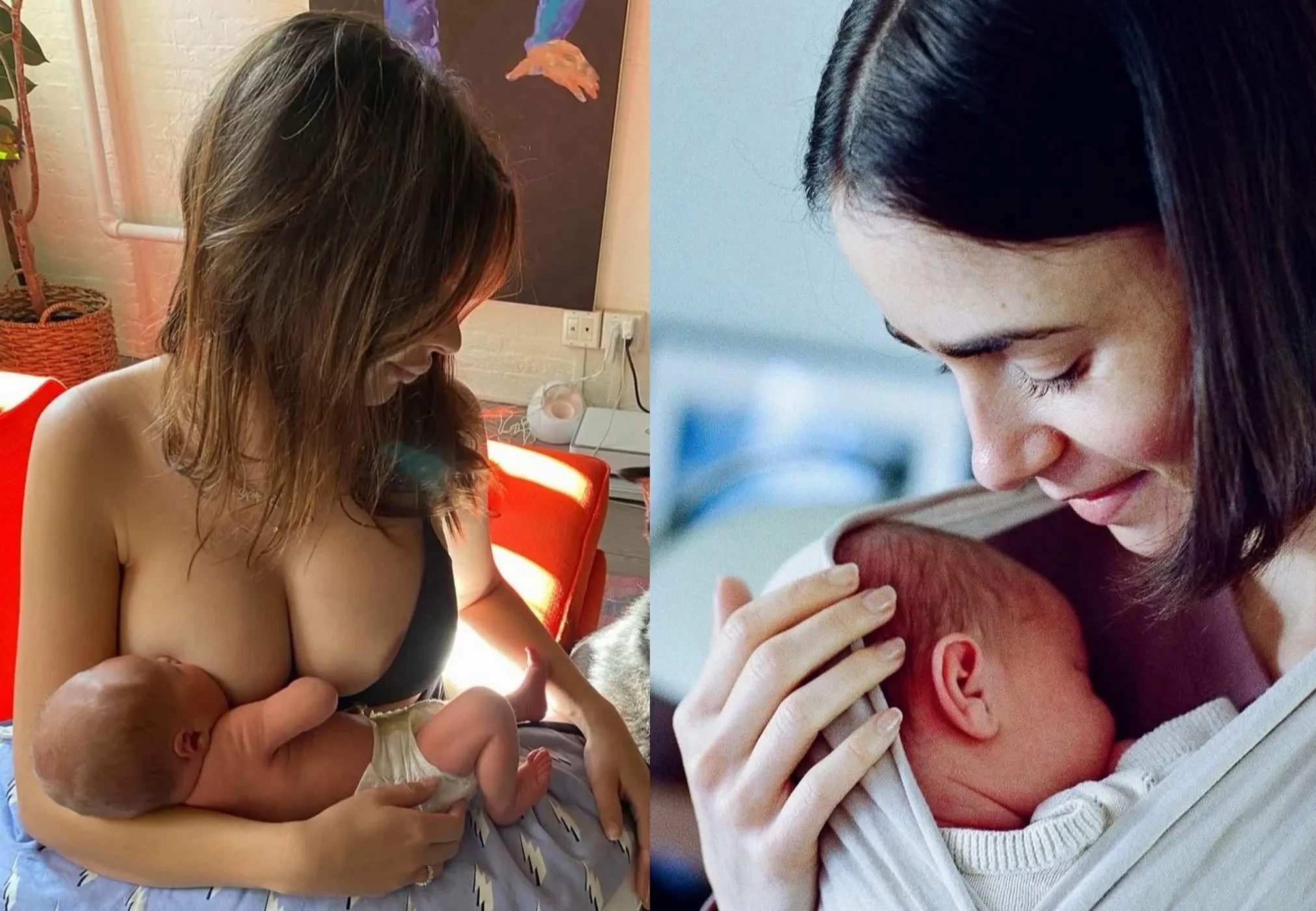 Эмили Ратаковски с сыном и Лили Коллинз с дочерью