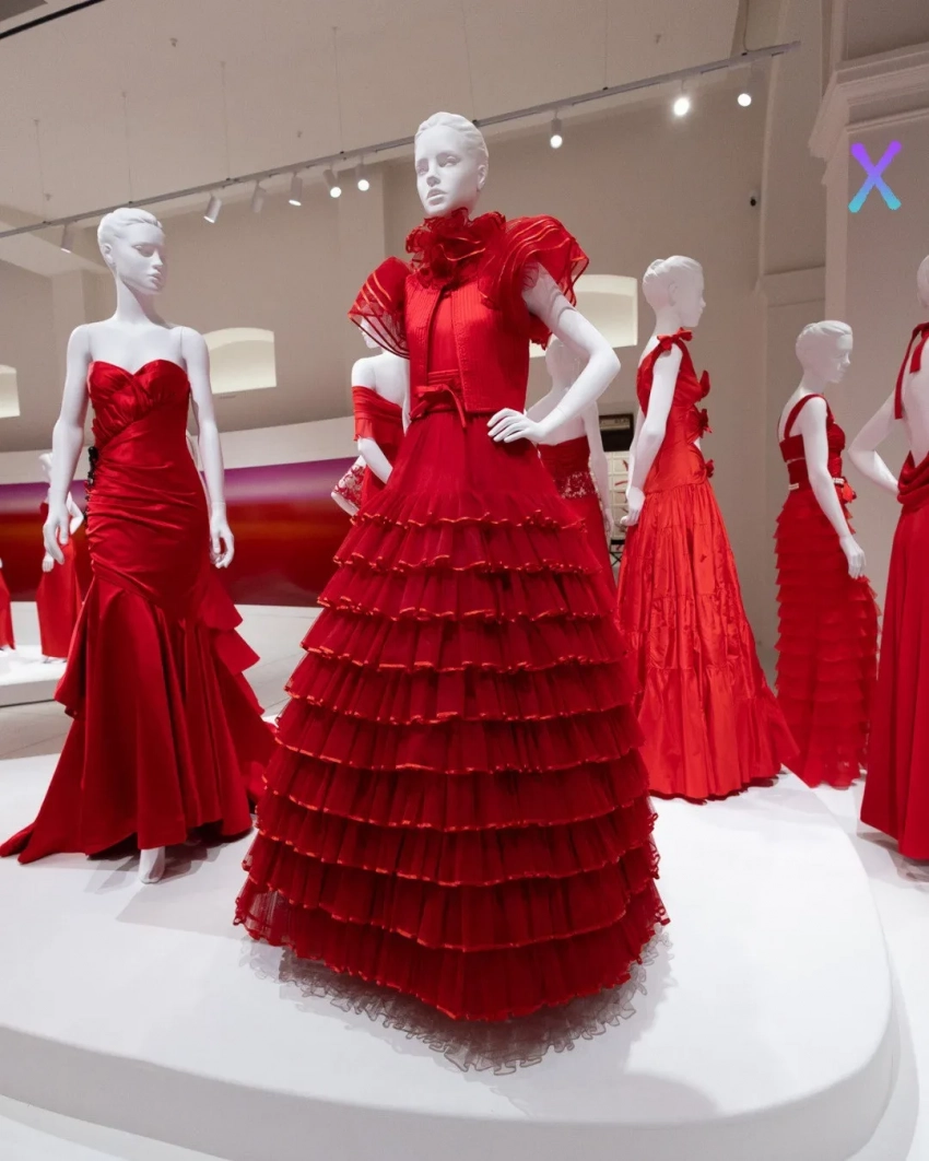 Карлос Соуза и Наталья ВодяноваЭкспозиция посвящена красному цвету, на ней представлены 30 предметов искусства и 50 легендарных моделей Valentino, создававшихся на протяжении пяти десятилетий. Также выставку посетила 59-летняя актриса Элизабет Хёрли с сыном Дэмианом.