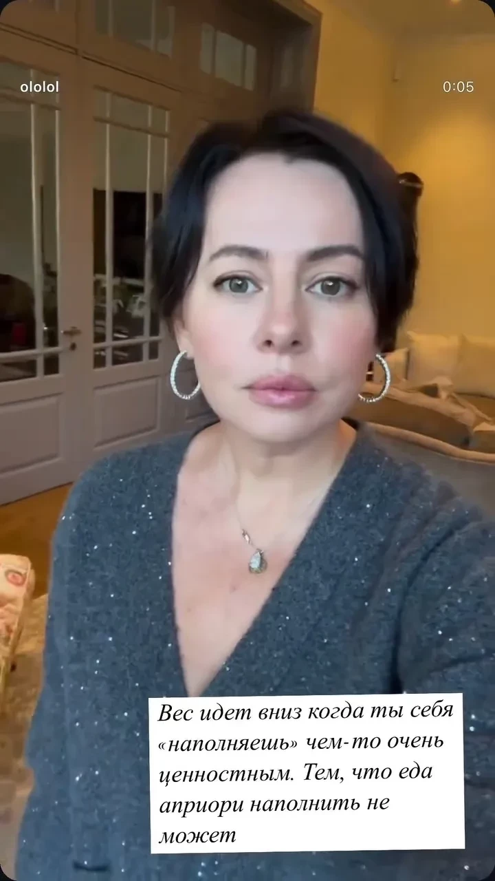"Никто не хочет верить, что дело не в силе воли и не в "Оземпике", а в голове. Вес идёт вниз, когда ты себя "наполняешь" чем-то очень ценностным. Тем, что еда априори наполнить не может", — написала 46-летняя Лаврентьева в своём инстаграме*.