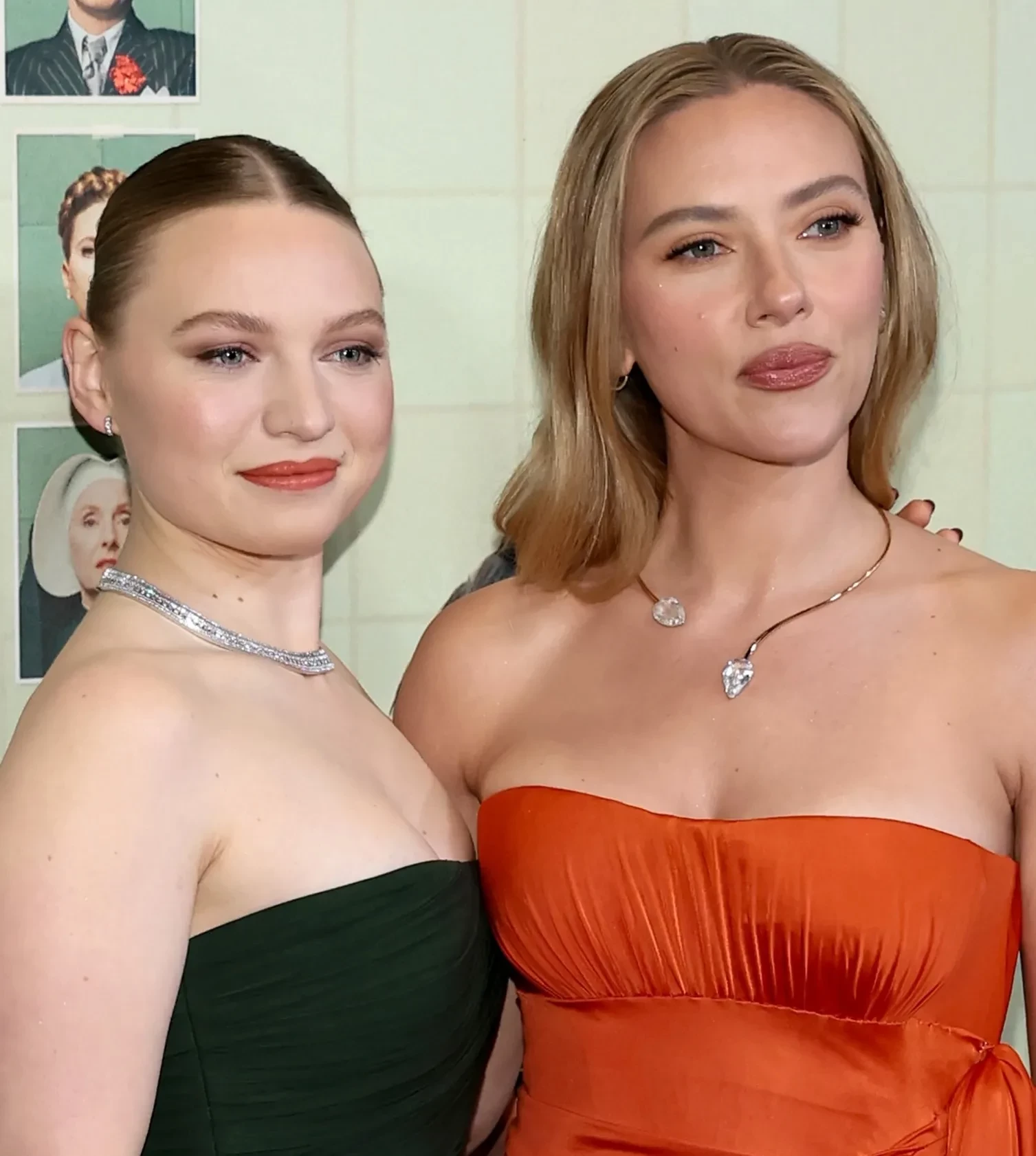 Миа Триплтон и Скарлетт ЙоханссонМиа Триплтон и Скарлетт ЙоханссонНачинающая актриса Миа Триплтон позировала на премьере в зелёном платье Elie Saab без бретелей. Её образ дополнили украшения с бриллиантами Maison Boucheron на общую сумму 400 тысяч долларов (более 30 млн рублей). 40-летняя Скарлетт Йоханссон появилась на мероприятии в кастомном оранжевом платье Saint Laurent.