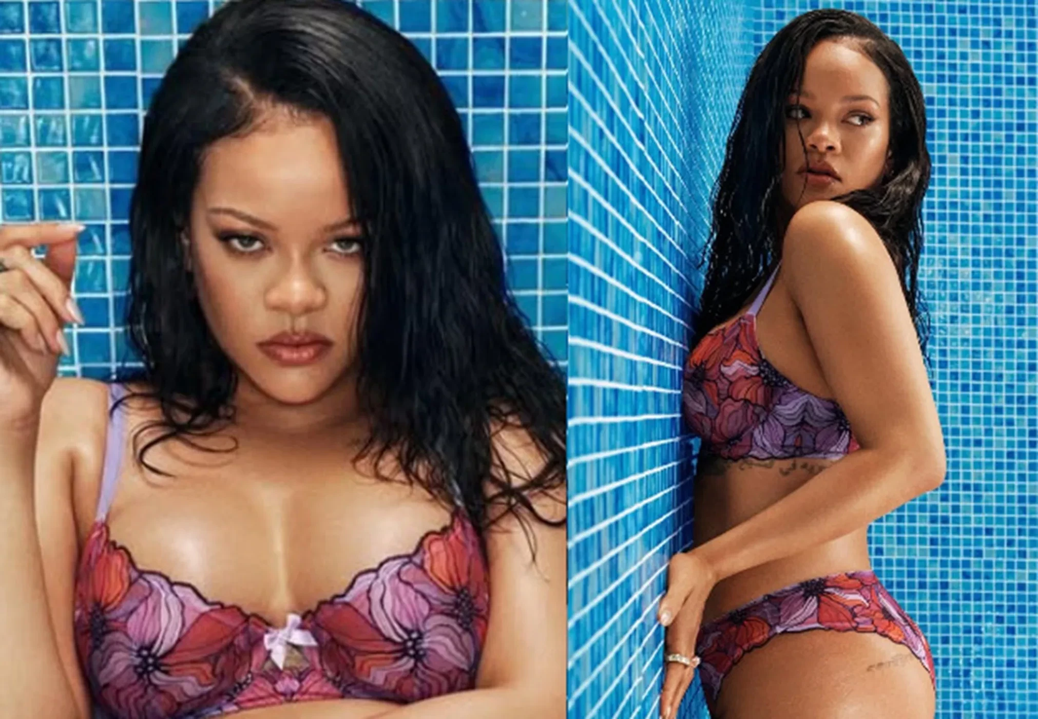 Рианна, которая недавно подтвердила, что ждёт третьего ребёнка, снялась для своего бренда Savage X Fenty. В новом кампейне 37-летняя певица презентовала коллекцию нижнего белья под названием "Мозаичное кружево".