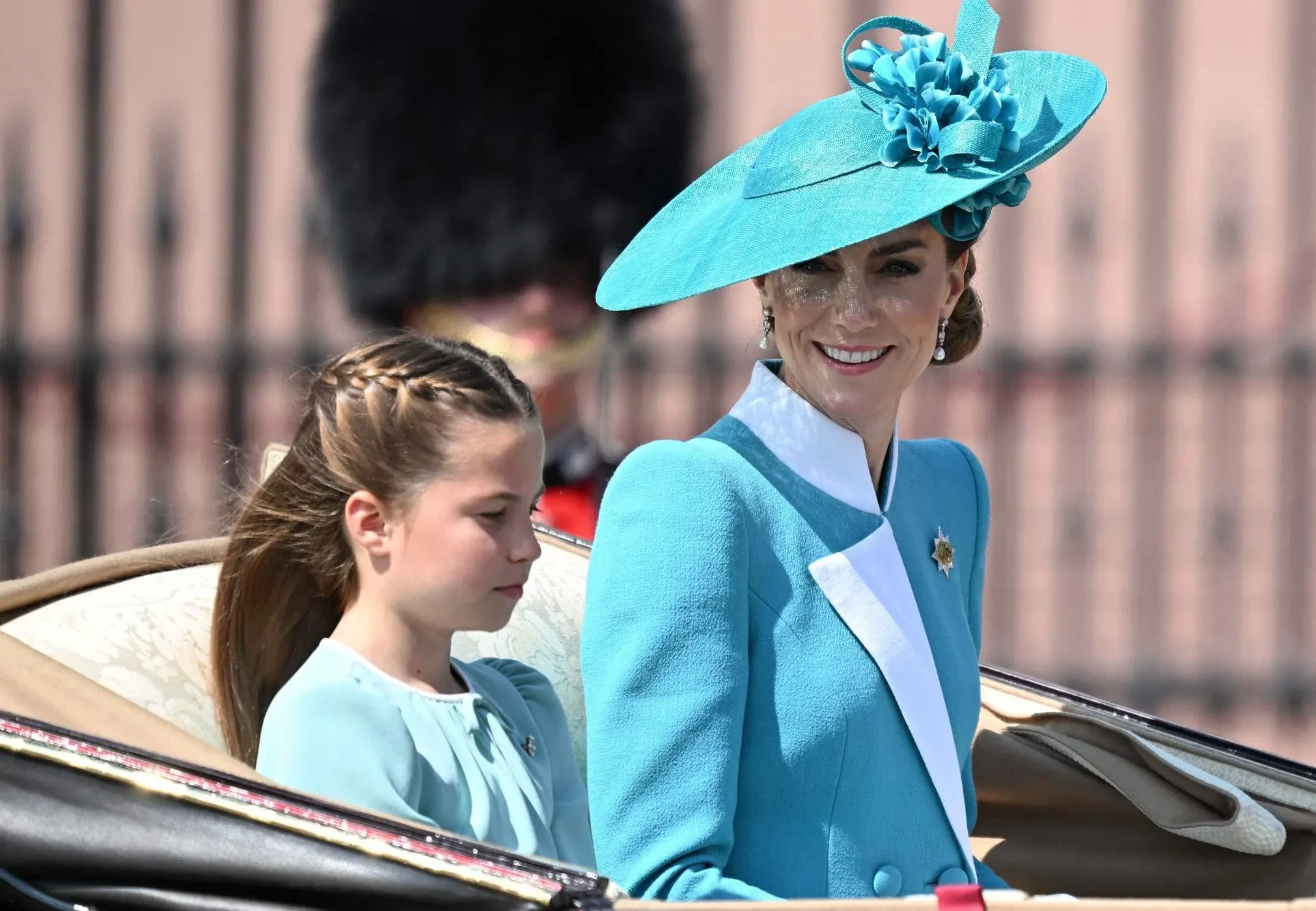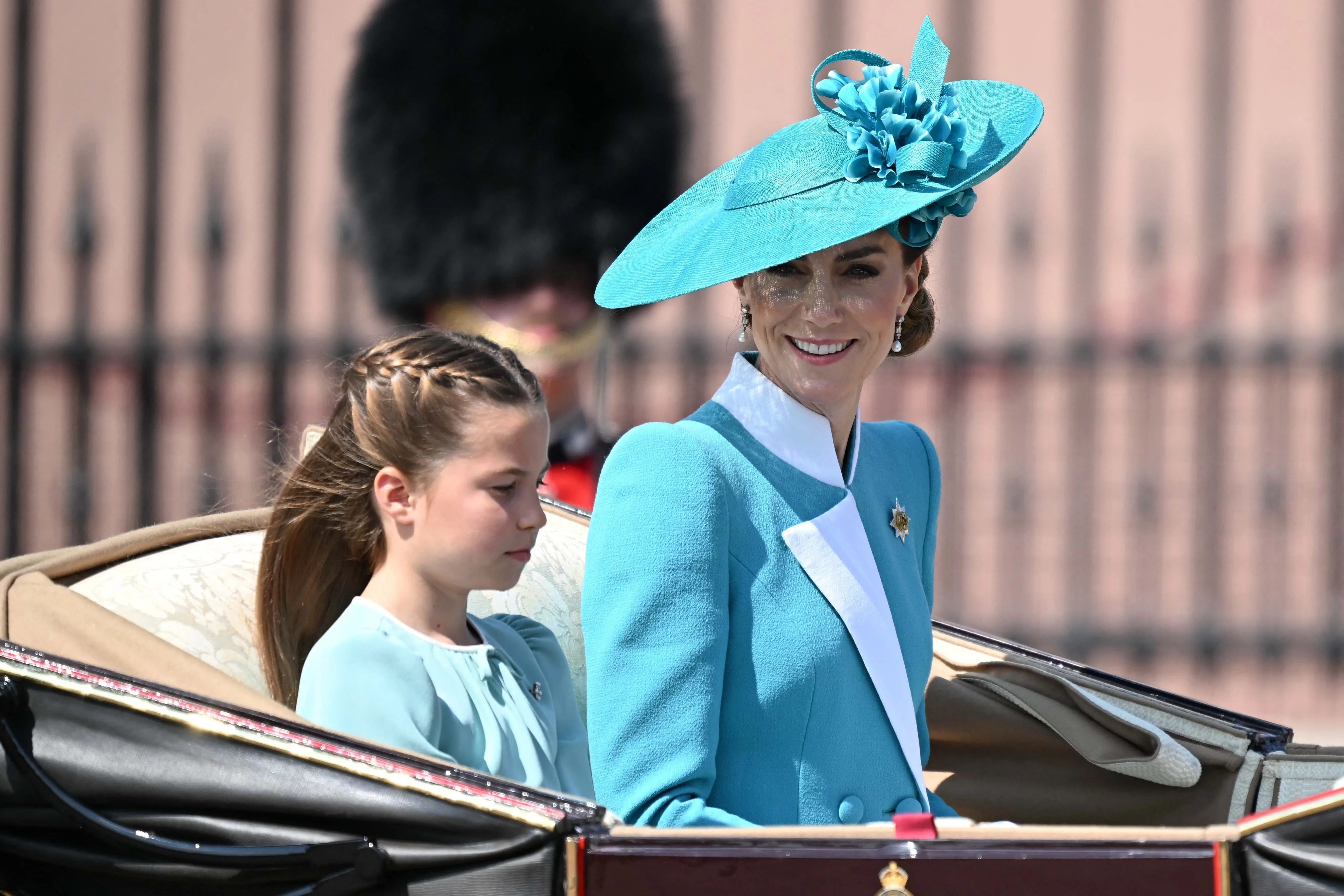 Кейт Миддлтон с детьмиКейт Миддлтон и принцесса ШарлоттаКейт Миддлтон с детьмиПринц Уильям по традиции был в форме и верхом на лошади, а его супруга ехала в карете вместе с их тремя детьми: принцами Джорджем и Луи и принцессой Шарлоттой, на которой было платье в тон наряда ее матери. Карл III тоже предпочел занять место в карете из-за состояния здоровья: монарх сейчас лечится от онкологического заболевания.
