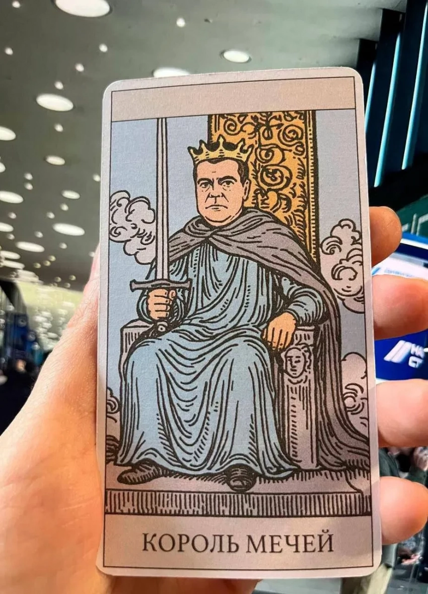 Анастасией Зерний и Никита МазепинСтоит также упомянуть, что на форуме обнаружились не только игрушки лабубу с лицами политиков, но и карты таро. Так, в сеть попали фото карт “Король мечей” с Дмитрием Медведевым и “Королева жезлов” с Эльвирой Набиуллиной.