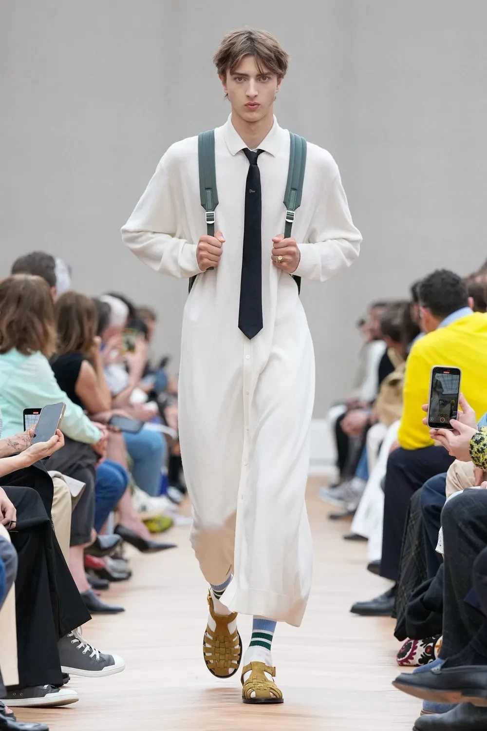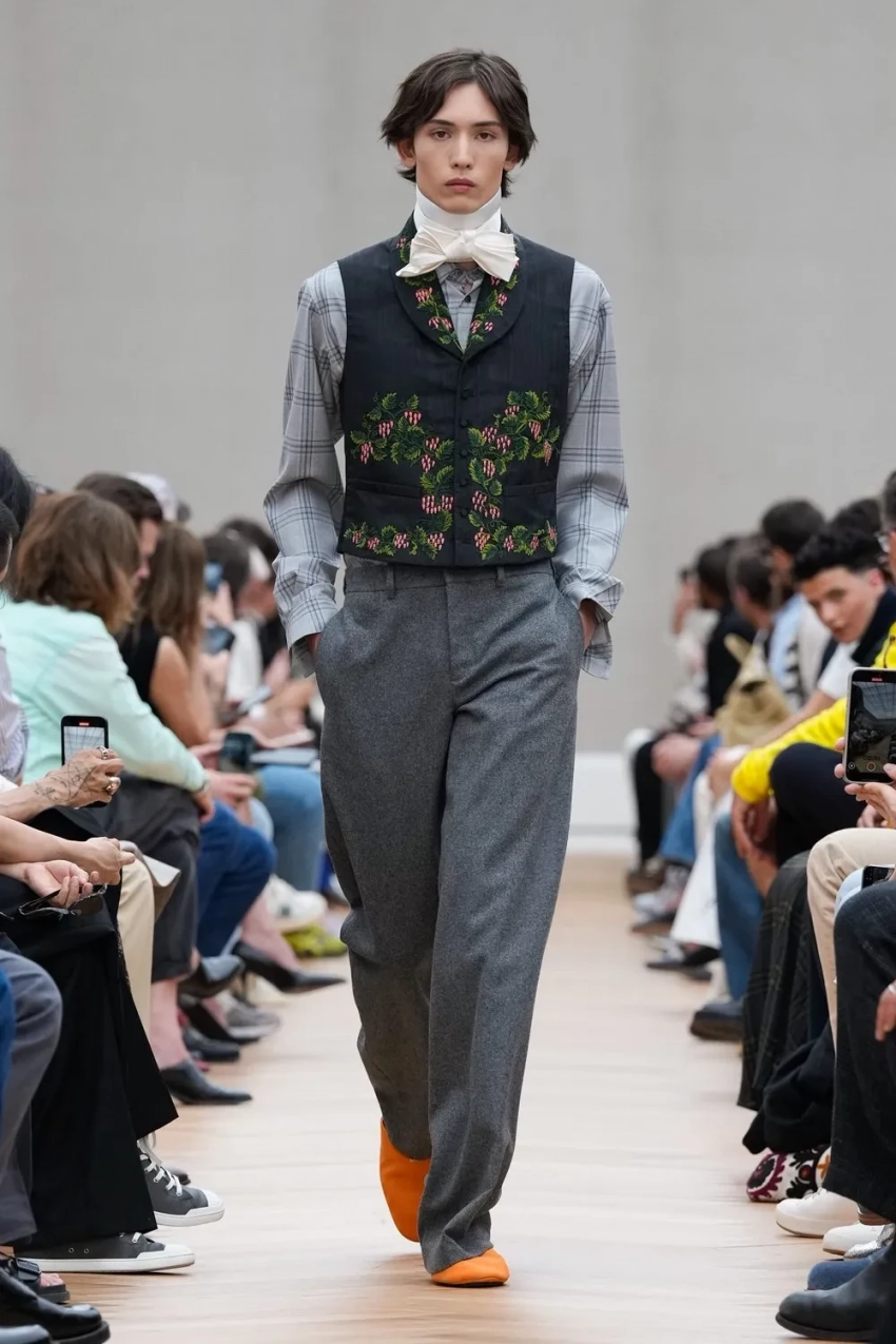 Наталья ВодяноваНаталья ВодяноваНаталья ВодяноваНаталья Водяноваhttps://t.me/spletnik2006/34092Роберт ПаттинсонРоберт ПаттинсонДэниел КрейгСабрина КарпентерСабрина КарпентерДонателла ВерсачеДонателла ВерсачеЛуи ГаррельМиа ГотМиа ГотФаррелл Уильямс и Хелен Ласичан с сыномВ дебютном шоу Джонатана Андерсона в качестве нового креативного директора французского модного дома модели выходили на подиум в рубашках с высокими воротниками и фраках, что стало отсылкой к одной из любимых книг дизайнера — "Дракуле" Брэма Стокера. В коллекции также представлены объёмные шорты карго, которые явно завирусятся среди инфлюенсеров, широкие костюмные брюки и приталенные жилеты, потёртые джинсы, "дедовские" сандалии, лоферы и высокие кроссовки. Зрители и критики высоко оценили дебют Андерсона и встретили его на поклоне овациями.