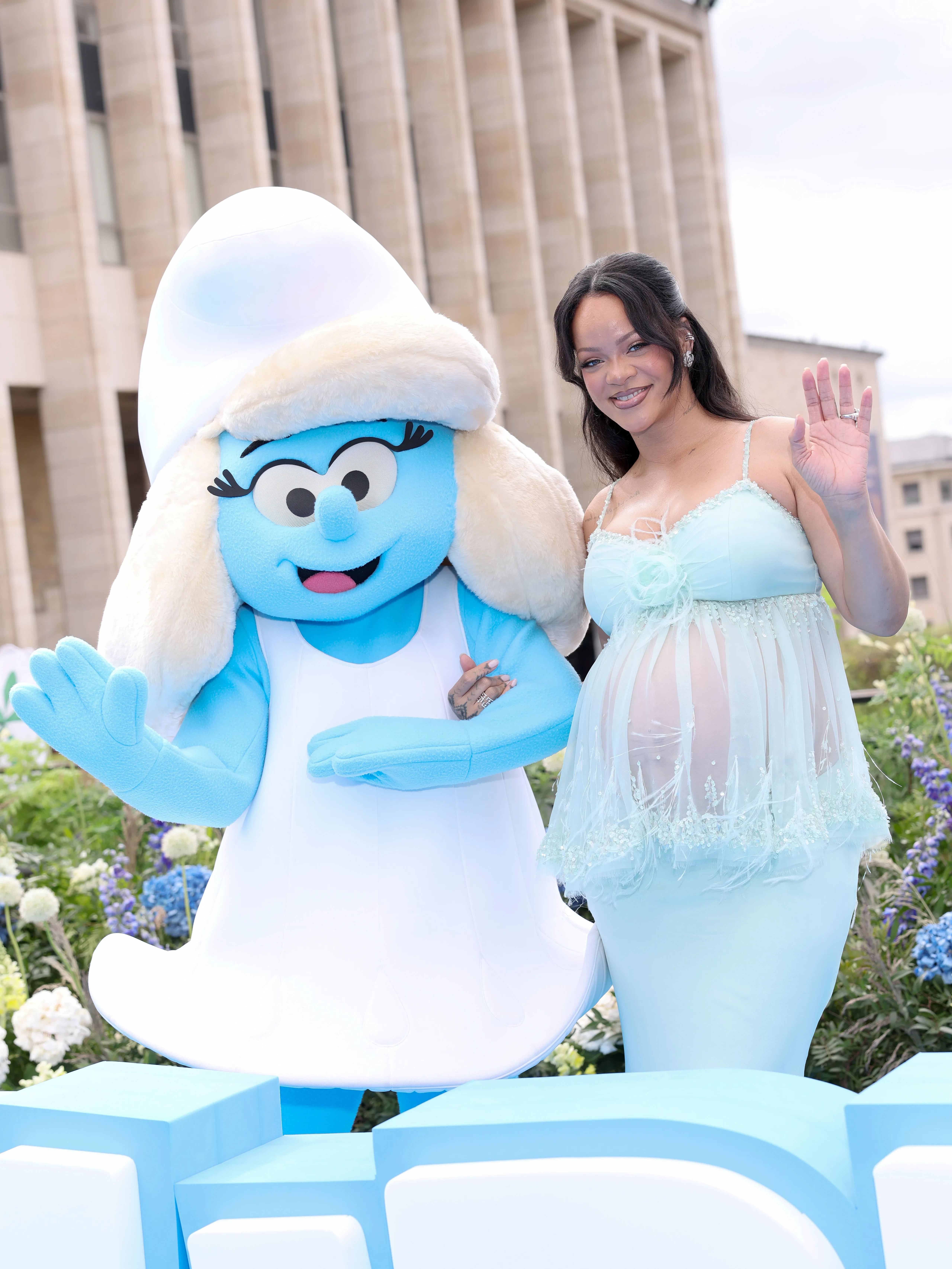 37-летняя Рианна, которая сейчас ждёт ребёнка от своего возлюбленного A$AP Rocky, посетила премьеру фильма "Смурфики в кино" в Брюсселе.