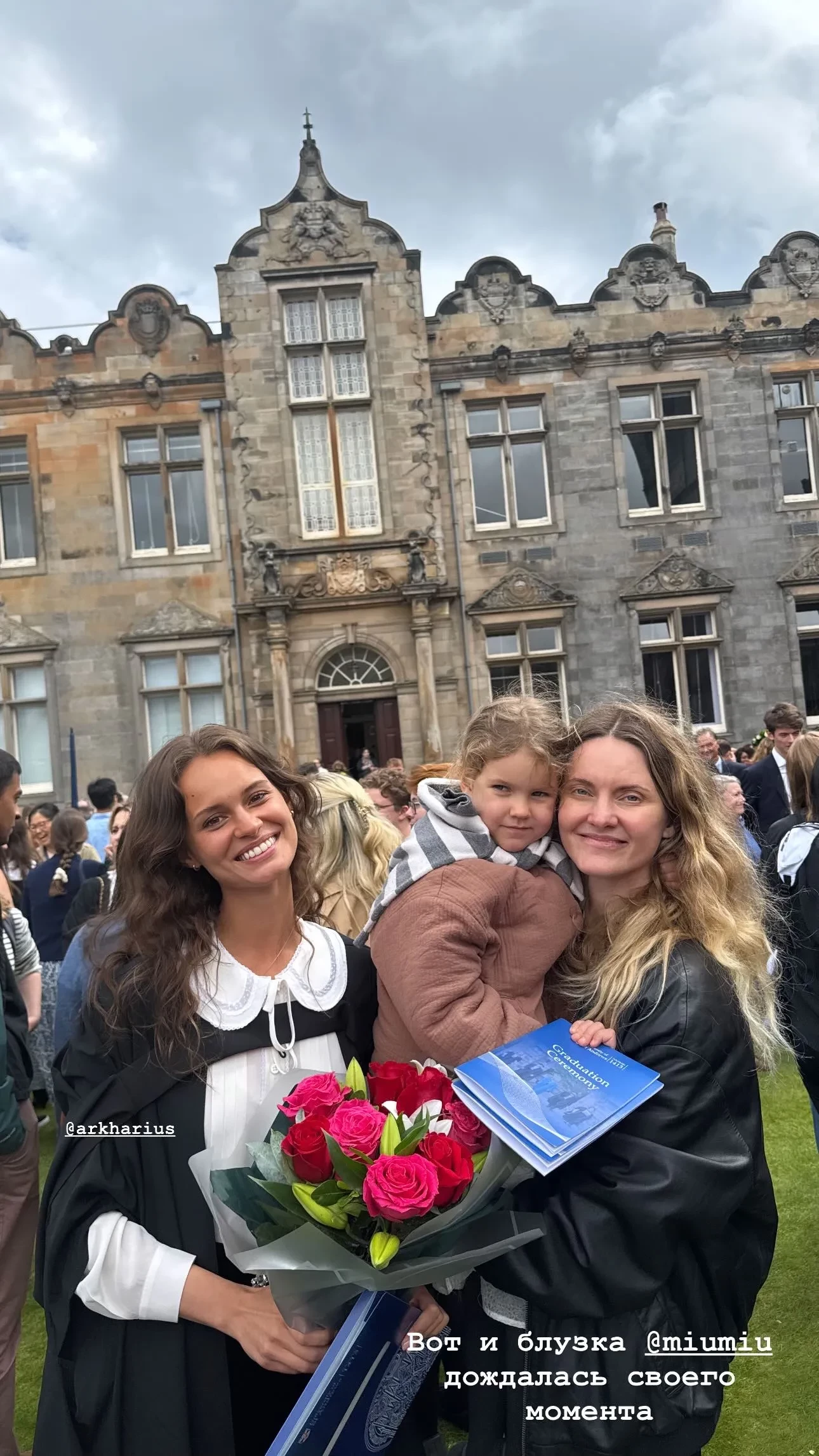 Дочь бывшего главного редактора российского Elle Екатерины Мухиной, Мария, окончила Сент-Эндрюсский университет в Шотландии, выпускниками которого также являются Кейт Миддлтон и принц Уильям. В своём инстаграме* Мухина поделилась снимками с выпускного и поздравила дочь с этим достижением. В Шотландию также приехала младшая дочь Екатерины, чтобы поздравить сестру.