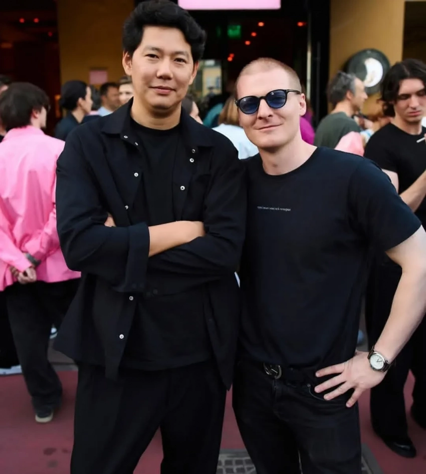Режиссёры Евгений Сангаджиев и Клим Козинский“Есть в Москве люди с удивительным кругом общения, где сплетаются актёры, журналисты, фэшн-инфлюэнсерки, и просто люди, которых ты сто лет не видел, и это тоже про Илюшу. Толпа была не для светской хроники — кажется, даже фотографа не привлекли. Очень личный получился и шумный праздник, куда пришёл причудливый микс людей”, — пишет про Тютенкова телеграм-канал “Антиглянец”.
