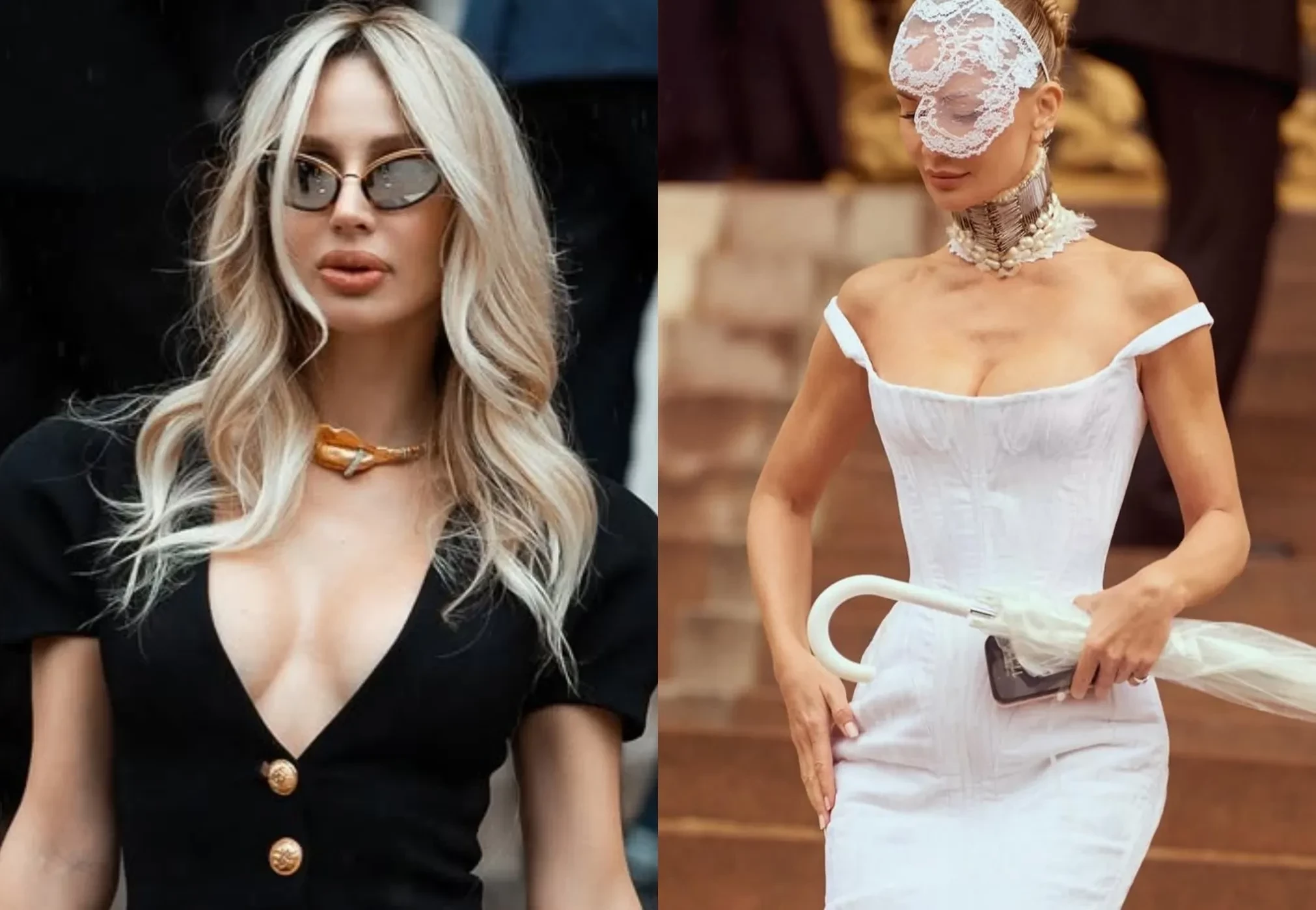 58-летняя Рената Литвинова по традиции посетила кутюрное шоу Schiaparelli, примерив чёрное платье бренда и дополнив образ солнцезащитными очками. На шоу также была экс-супруга опального главы "Банка Москвы" Андрея Бородина Татьяна Корсакова, которая позировала фотографам в белом корсетном платье с вуалью. На улицах Парижа Татьяна выгуляла также образ в пудровых оттенках с боа из перьев.