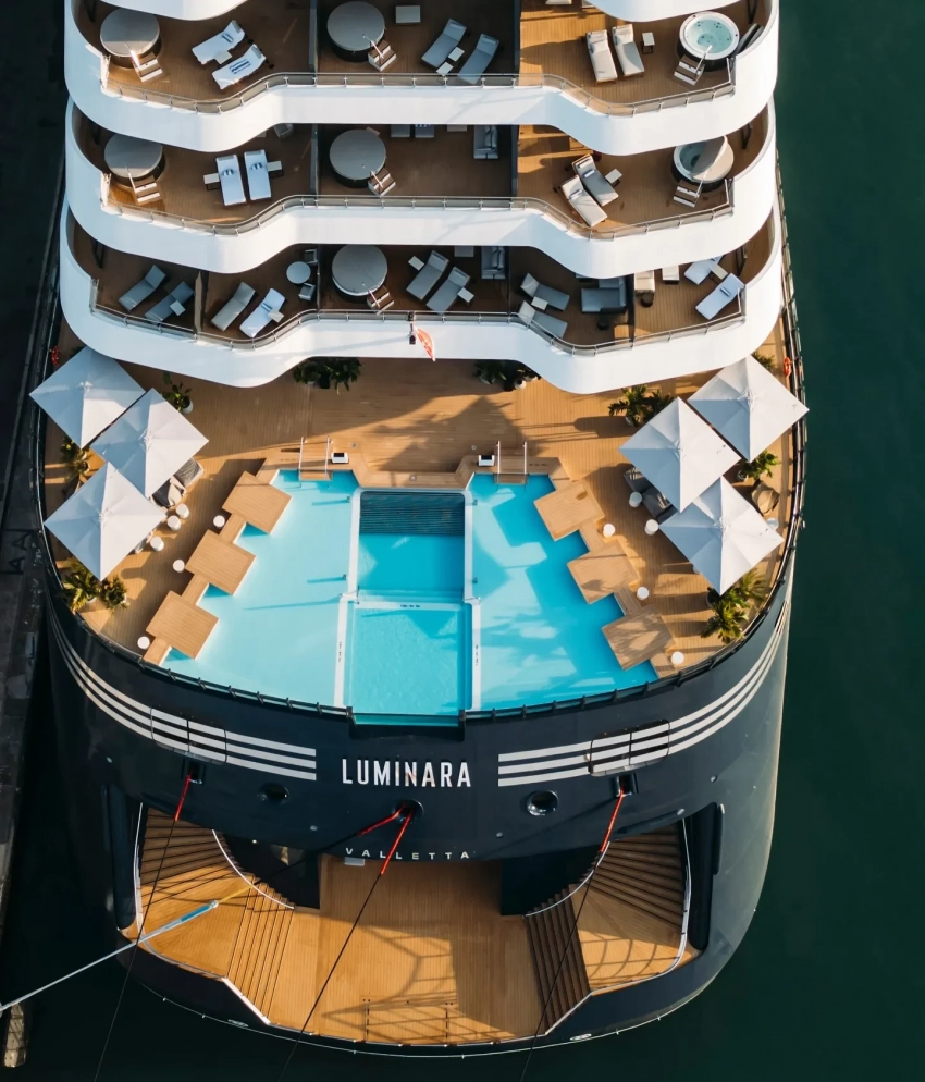 Суперяхта LuminaraО развлечениях тут тоже не забывают — например, в последнем круизе выступали Стинг, Элли Голдинг и диджей Kygo, а бизнесвумен и телеведущая Марта Стюарт провела мастер-класс по приготовлению фирменных коктейлей Martha-tinis.