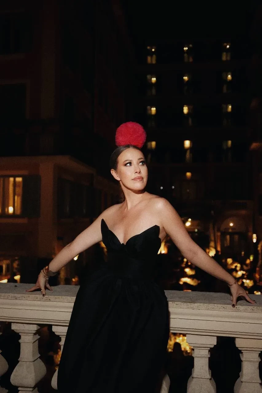 Собчак появилась на вечеринке в платье люксового австралийского бренда Zimmermann и ободке от модного дома своей подруги Ульяны Сергеенко Ulyana Sergeenko. В своём инстаграме* она показала фото с мероприятия.