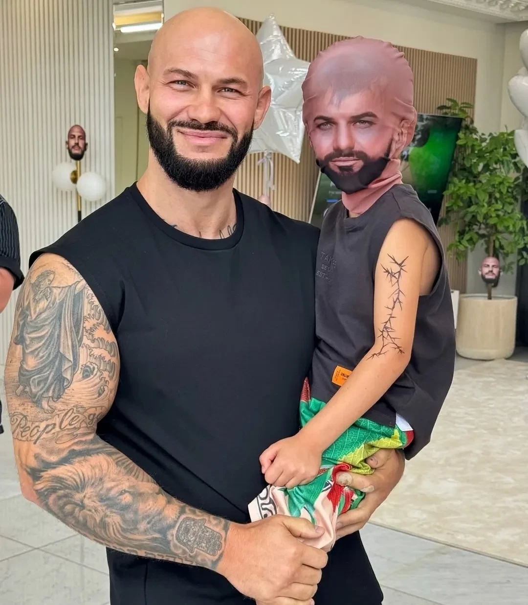https://t.me/spletnik2006/37002Члены семьи творчески подошли к поздравлению Джигана: так, единственный сын рэпера, пятилетний Давид, в шутку надел маску с лицом своего отца. Напомним, что у артиста также есть три дочери.