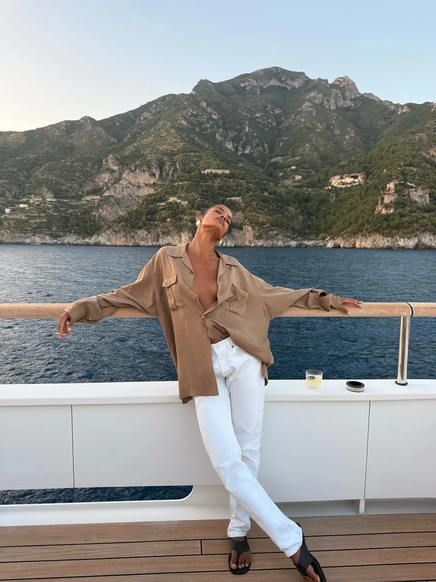 Девушка Венсана Касселя отдыхает в бикини на яхте в Италии