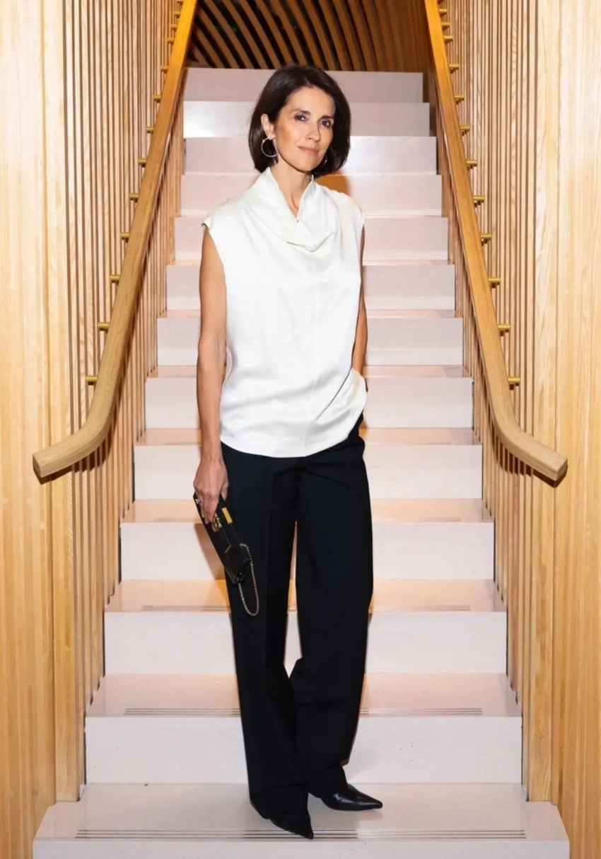 В коллекции представлены вечерние платья, комбинации из шёлка, блузы с рукавами-фонариками, топы с баской, а также мужская линейка нарядных костюмов.