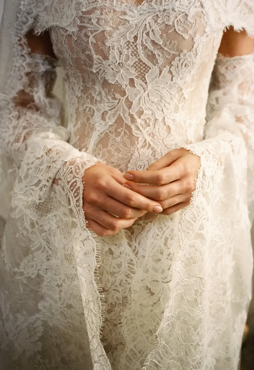 Алекс Грушински и Стелла БандерасСтелла БандерасСтелла Бандерас и Дакота ДжонсонАлекс Грушински и Стелла Бандерас с родителямиАлекс Грушински и Стелла БандерасДакота Джонсон с подружками невестыНевеста появилась перед женихом и гостями в платье из шифона и кружева с открытыми плечами и шлейфом. Изделие с готическим настроением Стелла разрабатывала совместно с модным домом Rodarte на протяжении девяти месяцев. "Я знала, что хочу что-то немного готическое, очень романтичное и вдохновлённое испанским кружевом. Чтобы оно выглядело будто из сказки", — поделилась Стелла.