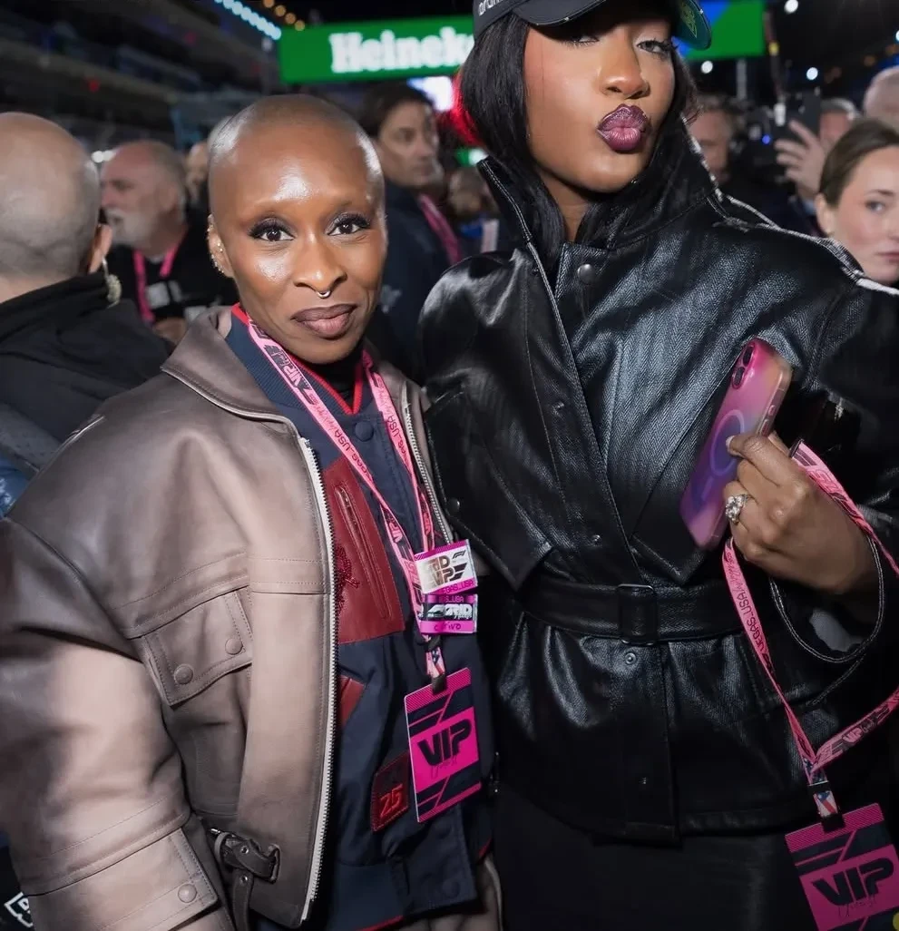 44-летняя Бейонсе пришла в кожаном мотокостюме Louis Vuitton с декольте и вместе с гонщиком Льюисом Хэмилтоном прокатилась на красном автомобиле Ferrari. А 55-летняя Наоми Кэмпбелл позировала на соревнованиях в тренче со змеиным принтом и солнцезащитных очках.