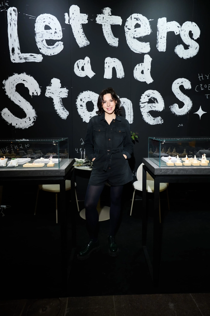 ВыставкаВ ювелирном разделе представлены коллекции таких брендов, как ArgentoV, Izmestiev Diamonds, Alexey Zubov и работы Ильгиза Фазулзянова, а больше всего внимания привлёк корнер Letters & Stones Натальи Архангельской.