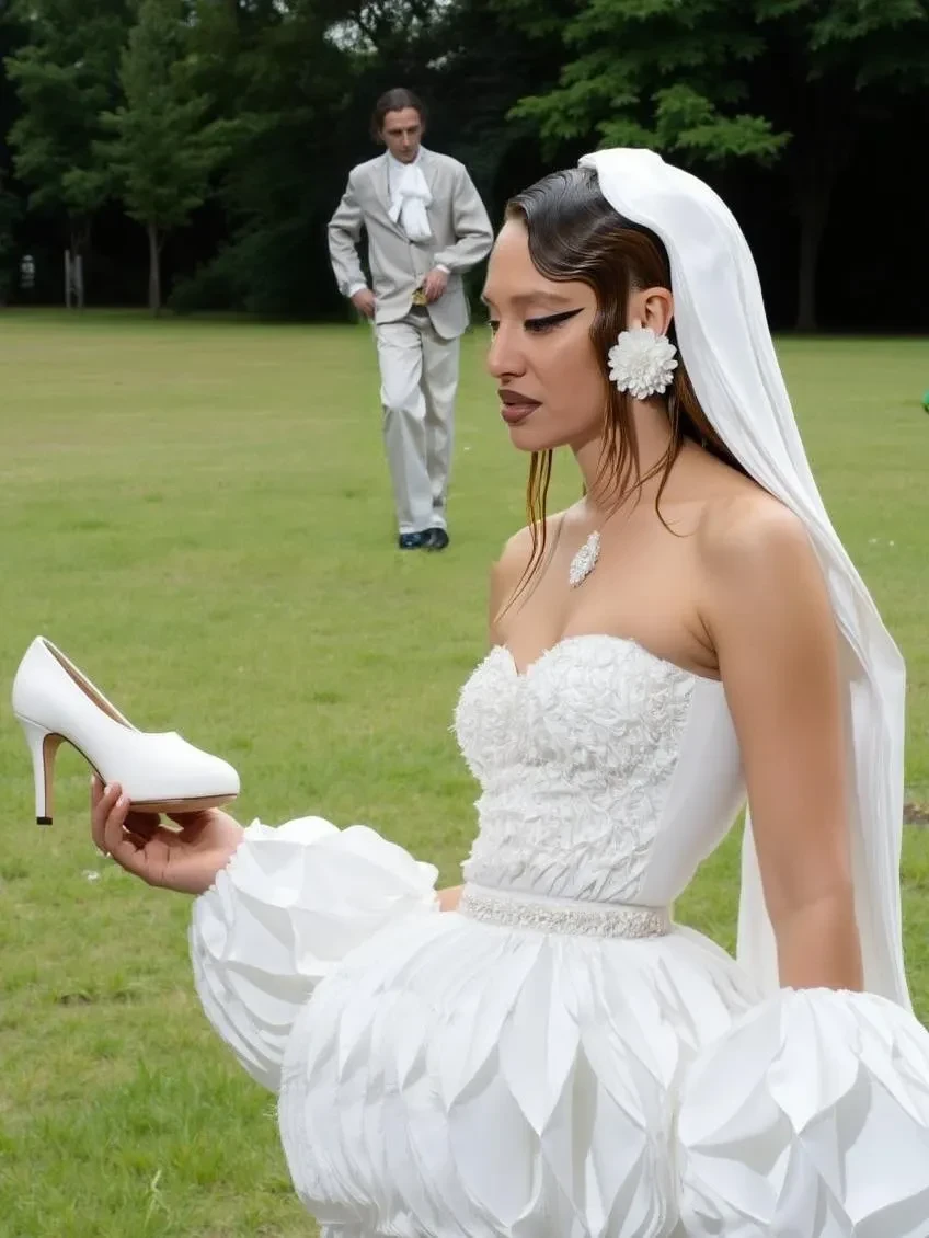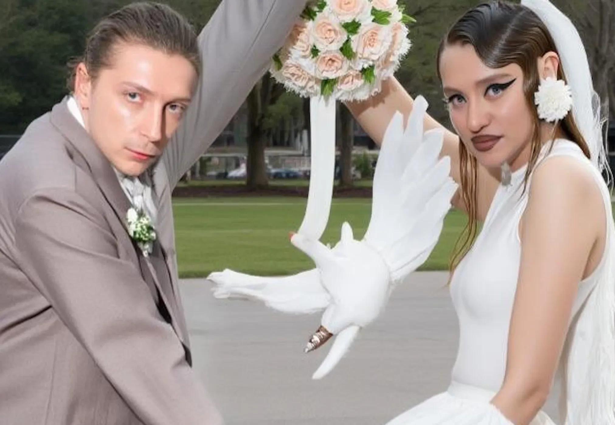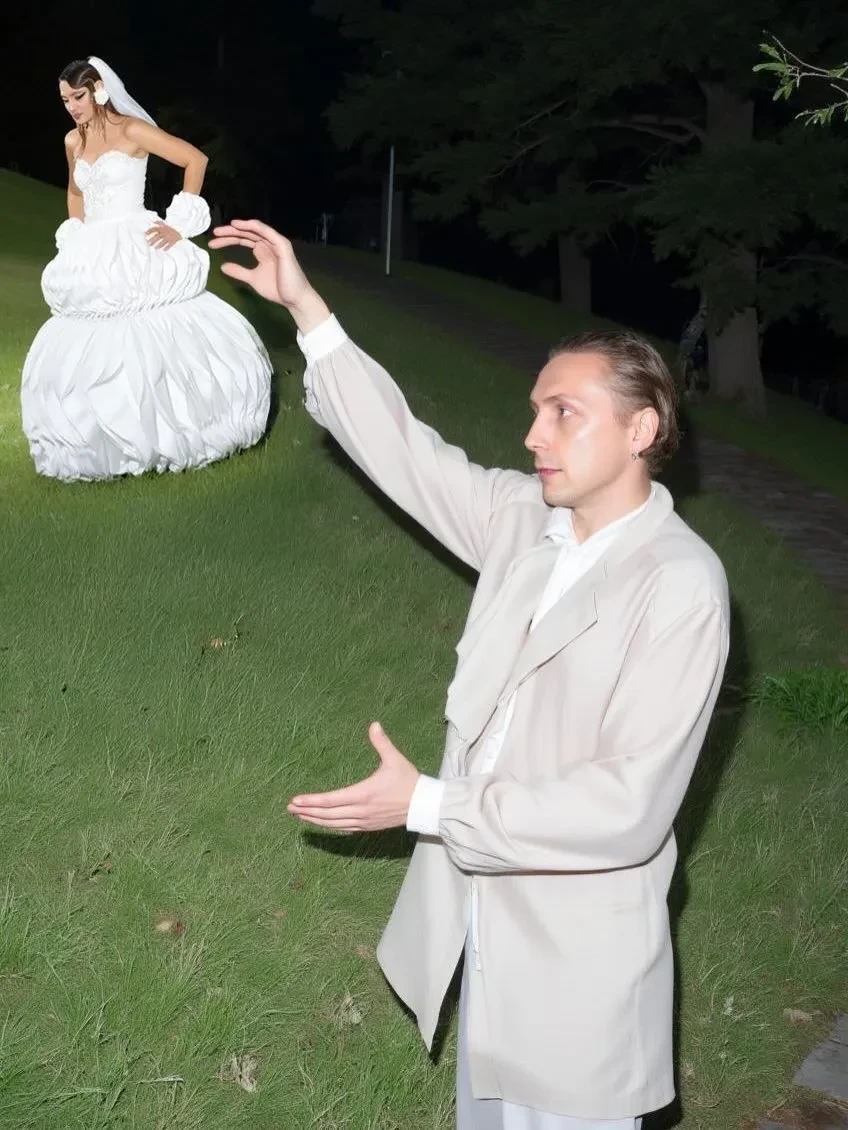 На ранее не опубликованных сюрреалистичных снимках пара позирует в парке в объективе фотографа Жени Филатовой. Миногарова примерила два наряда от дизайнера Александра Арутюнова, а Горчилин надел серый костюм и чёрную рубашку с брюками.