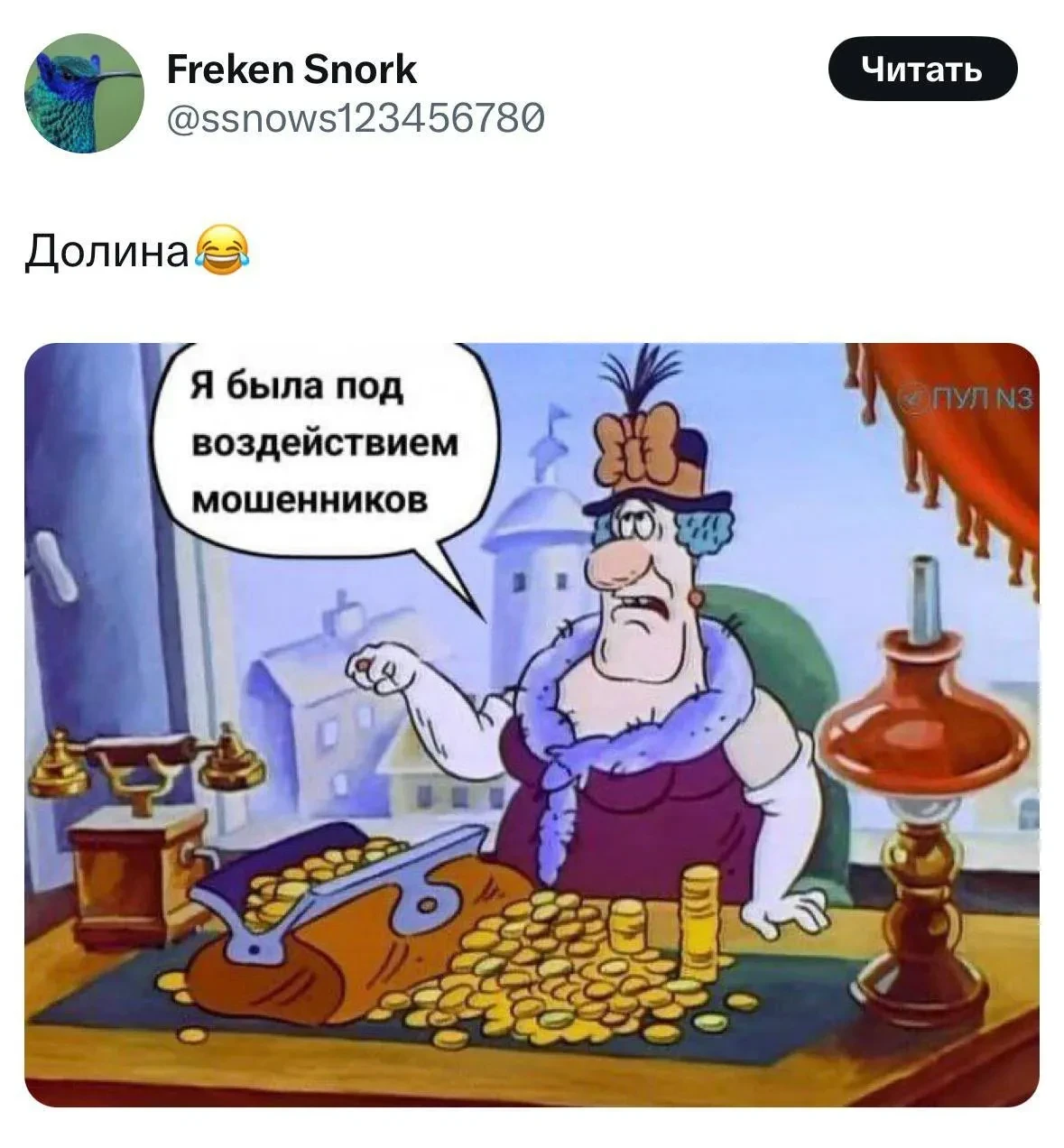 Скриншот Х"Всю жизнь пела. А останется в памяти людей, не как певица, а как глупая тётка, которую развели мошенники, а в итоге у нормальных людей отжали квартиру, честно купленную! Так себе "достижение", — констатируют в телеграм-канале "Шо, опять?".