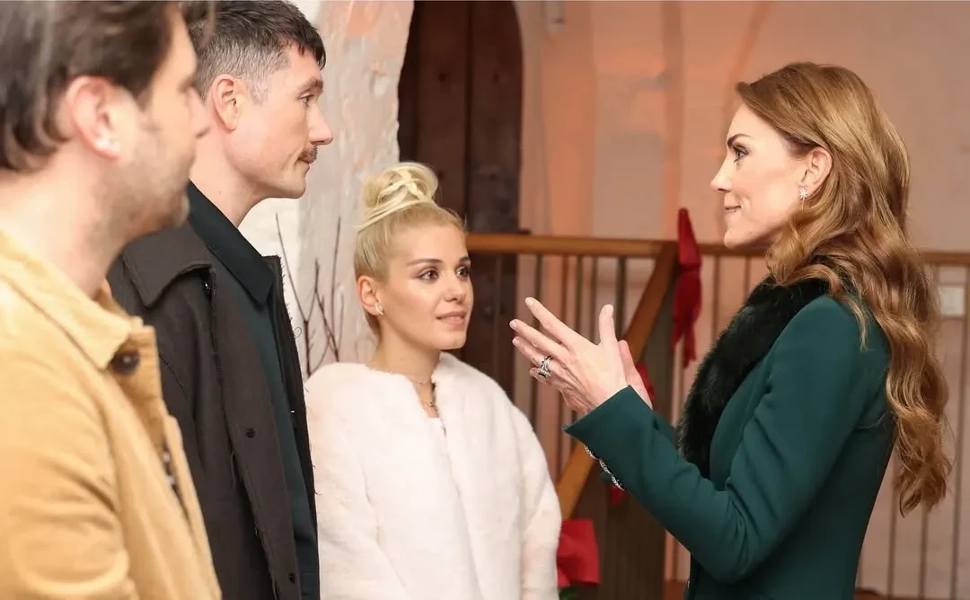 43-летняя принцесса Уэльская появилась на публике в длинном зелёном пальто. Её дети — 12-летний сын Джордж, 10-летняя дочь Шарлотта и семилетний сын Луи — выбрали наряды в той же цветовой гамме, что и у отца.