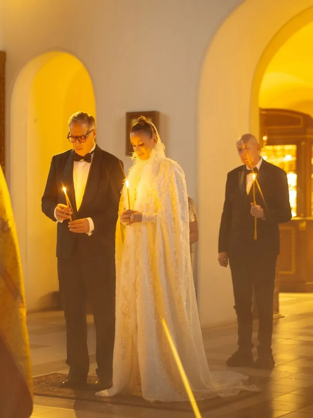 Невеста была в платье от дизайнера Александра Сирадекиана. Бракосочетание прошло в популярном среди селебрити Дворце бракосочетания № 1 на Английской набережной Санкт-Петербурга. Молодожёны также устроили фотосессию в местном пятизвёздочном отеле "Астория" и посетили храм.