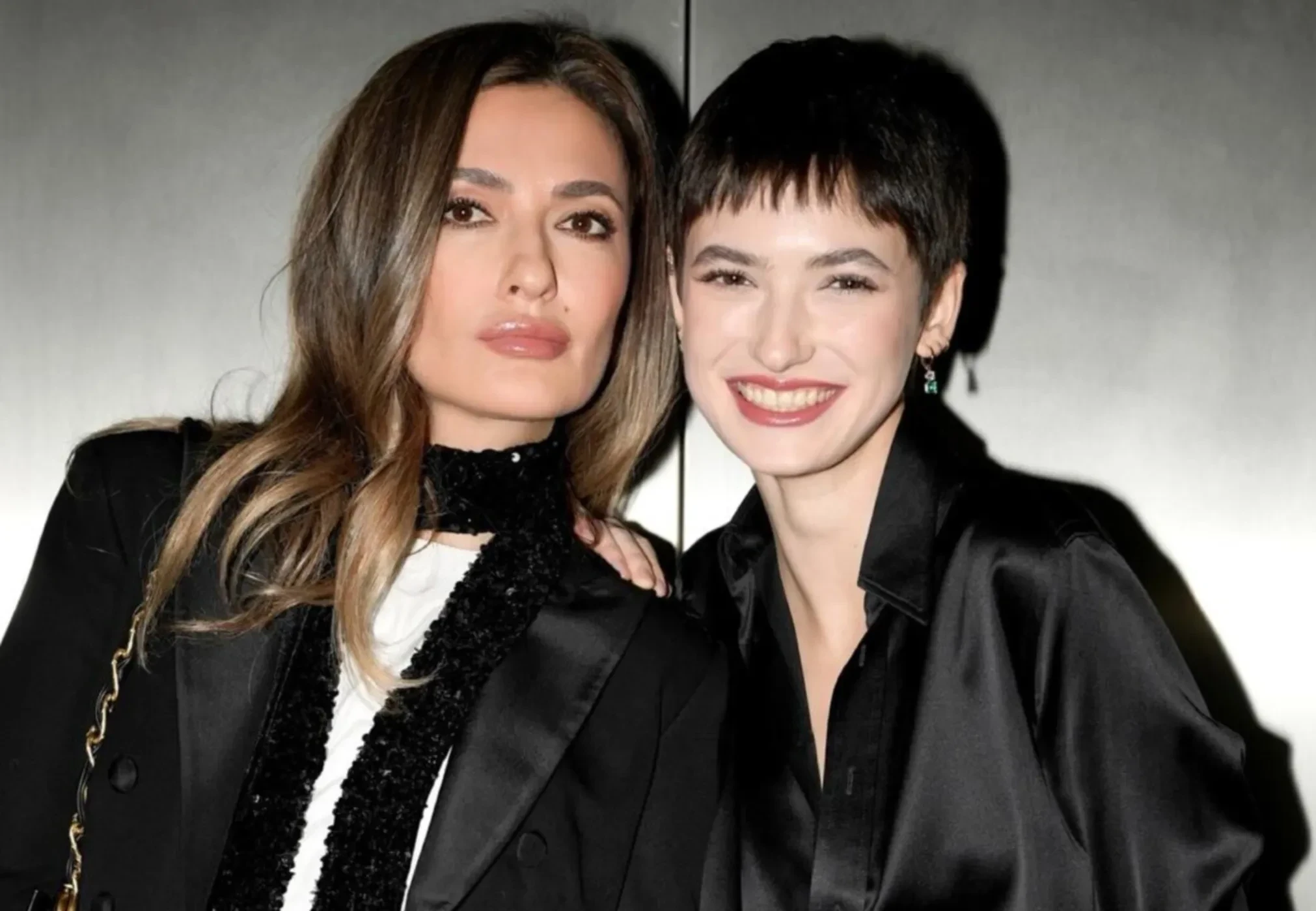 Для съёмки мама и дочь выбрали разные, но перекликающиеся наряды: Георгиева была в белой футболке, укороченном смокинге и джинсах, а Софья — в чёрной шёлковой рубашке и мини-юбке с пайетками. "Матушка соскучилась и затискала", — написала светская львица под публикацией.