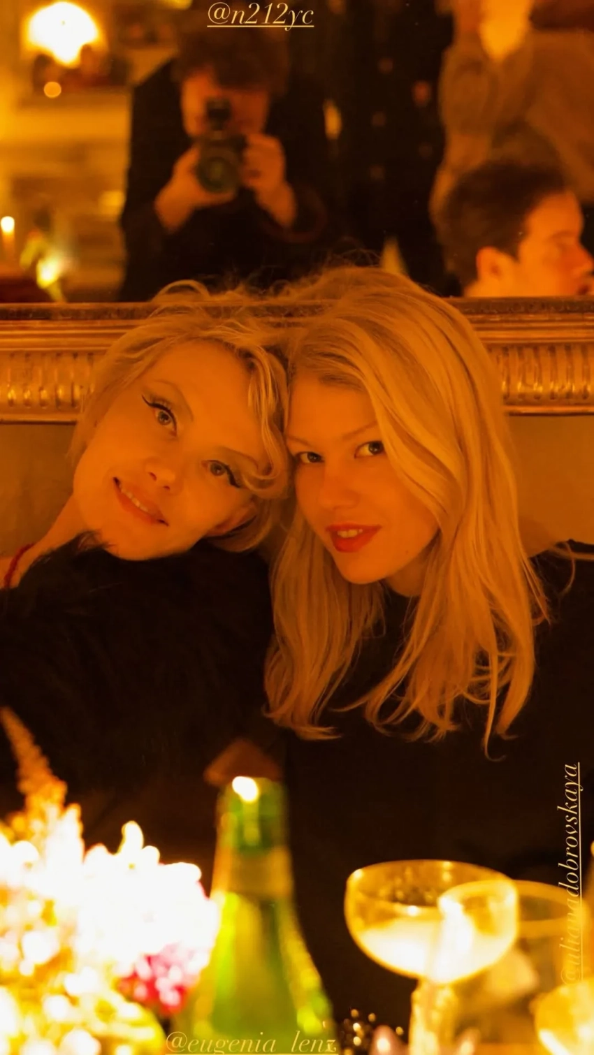 Рената Литвинова поделилась в инстаграме* новыми снимками с 24-летней дочерью Ульяной Добровской. На фото авторства популярного фотографа Никиты Чёрного мать и дочь позируют в ресторане, прислонившись друг к другу головами.
