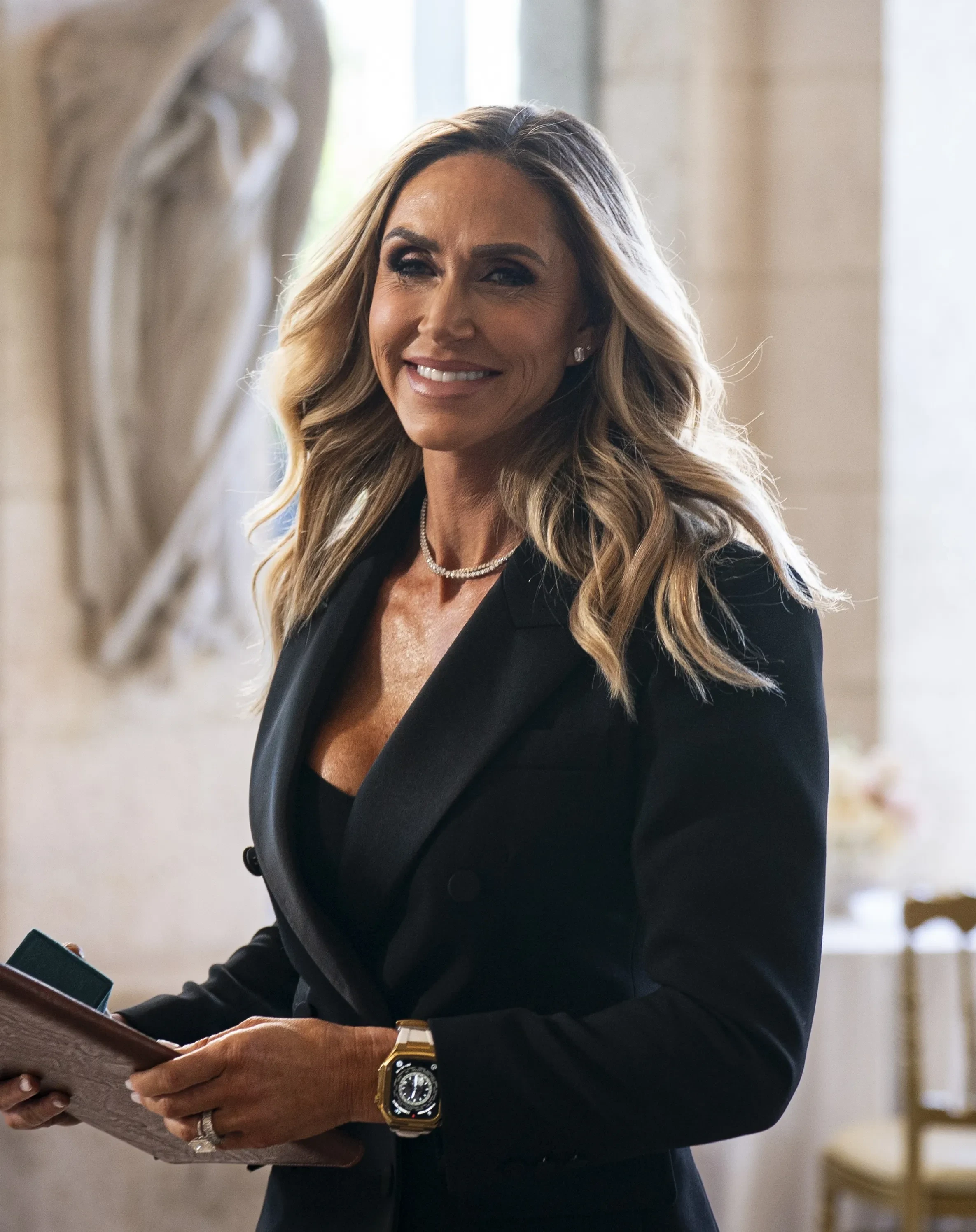 Лара ТрампДэн Скавино женился на 47-летней Эрин Элмор, которая тоже работает в правительстве США — директором Госдепартамента, отвечающим за искусство в посольствах. Свадьба прошла в резиденции Дональда Трампа в Мар-а-Лаго, которую открыли специально для торжества.
