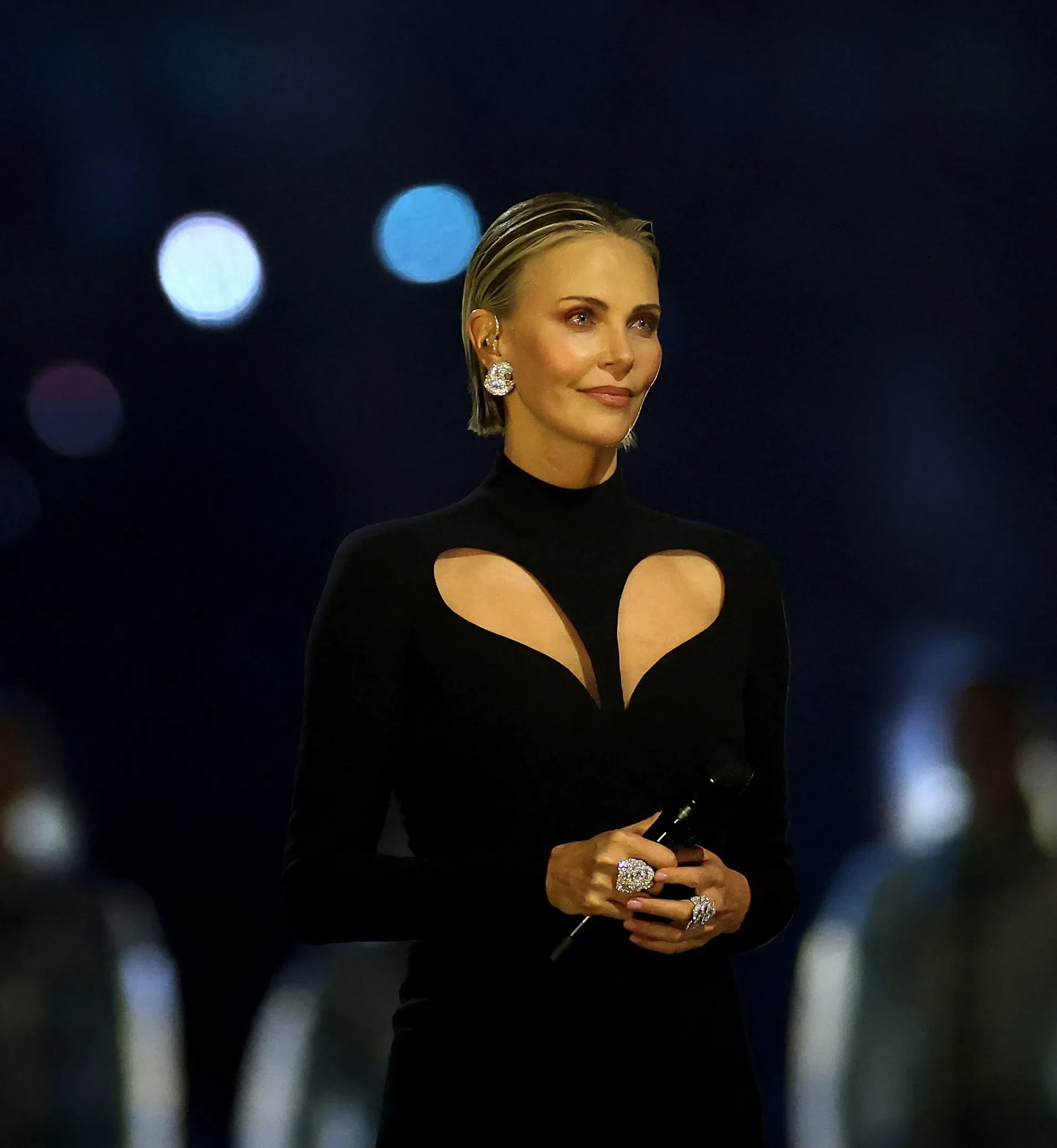 Во время церемонии 50-летняя Шарлиз Терон в качестве посла ООН вышла на стадион в чёрном облегающем платье Versace и выступила с речью, вдохновлённой Нельсоном Манделой.