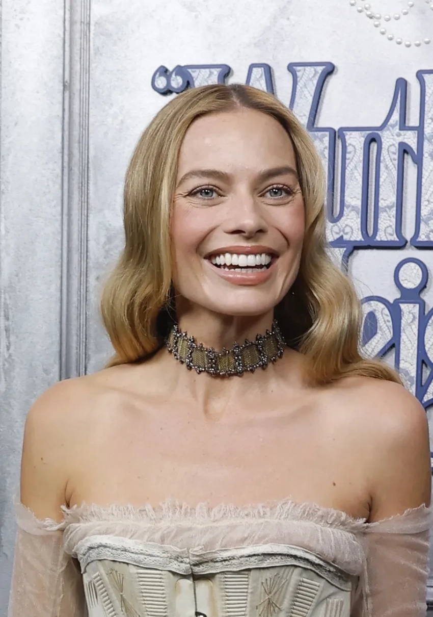 Актриса вышла на красную дорожку в платье Ashi Studio Couture с корсетом в стиле готического романтизма. Наряд продолжил череду ярких выходов Робби в рамках промотура: ранее она появлялась перед камерами в винтажном наряде John Galliano и в кастомном платье Chanel (и после одного из таких выходов её раскритиковали в сети за морщины).